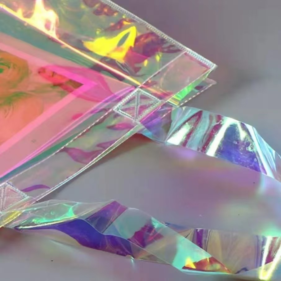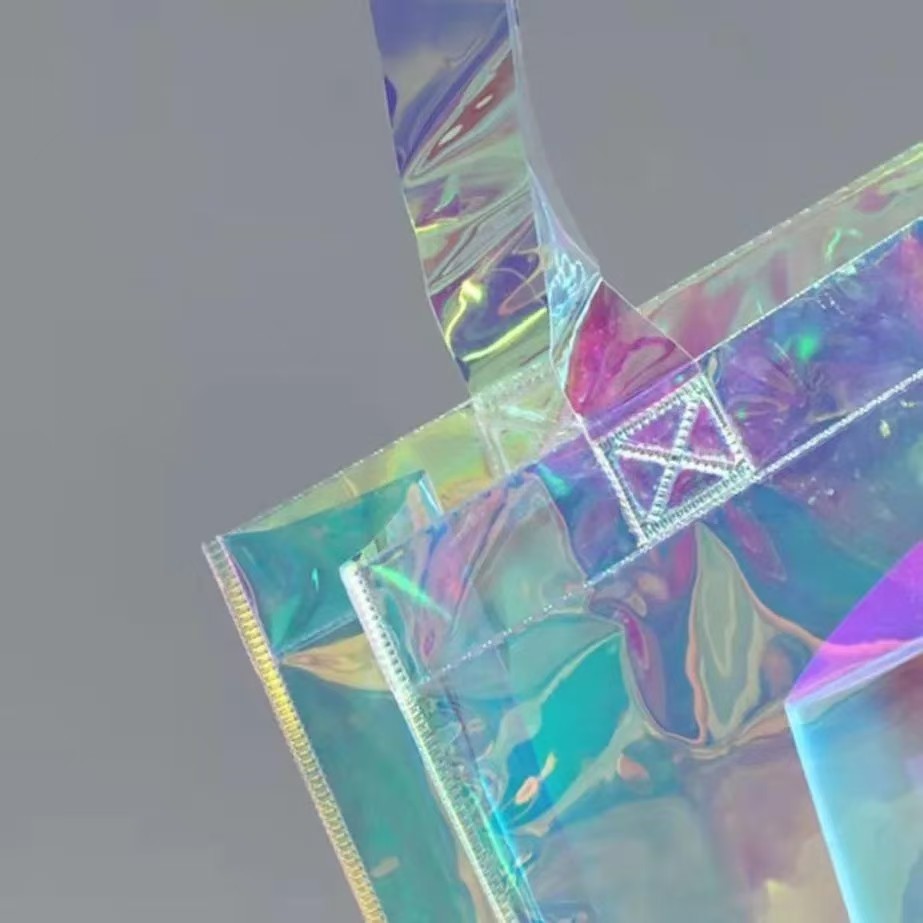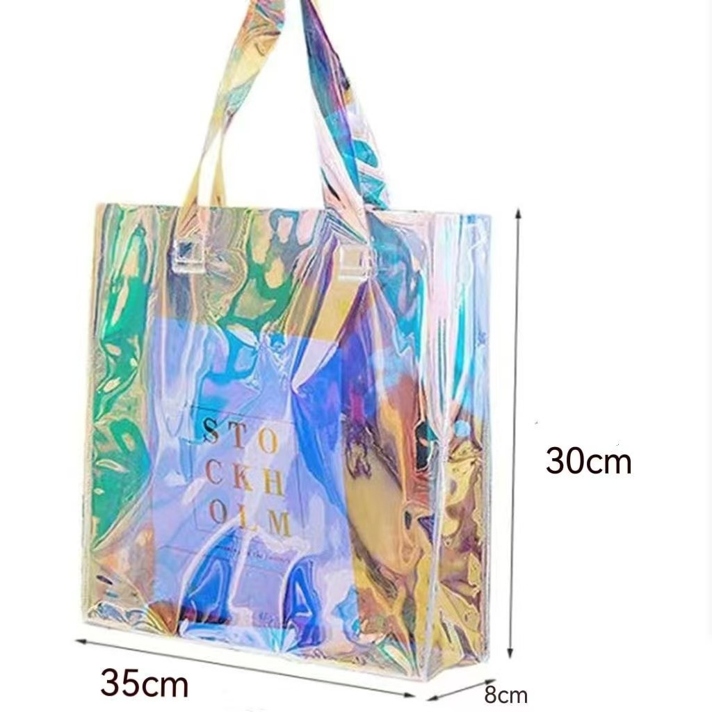 现货 PVC镭射手提袋幻彩沙滩袋礼品高级感广告宣传单塑料袋子