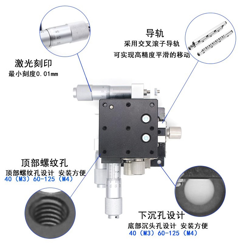 主营产品:手动位移平台千分头交叉导轨型精密微调滑台燕尾槽涡轮蜗杆齿轮齿条型调节平台R轴旋转滑台z轴升降平台