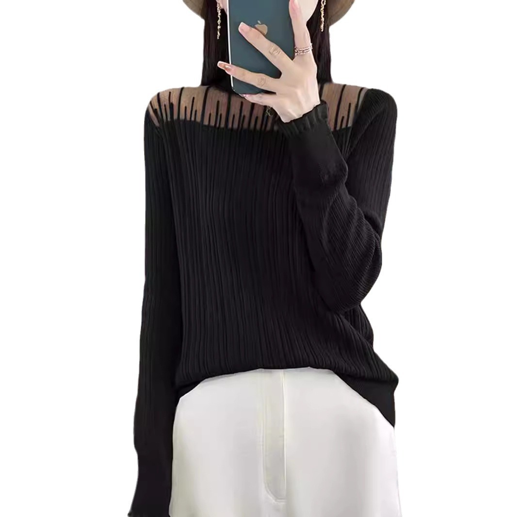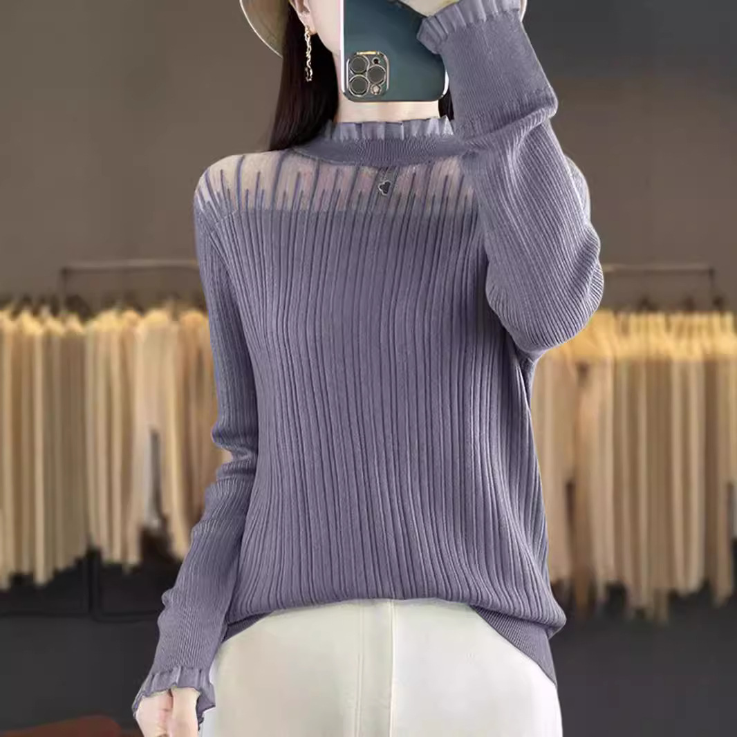 绒莱法式复古蕾丝打底衫女内搭立领时髦时尚洋气毛衫针织衫女背心
