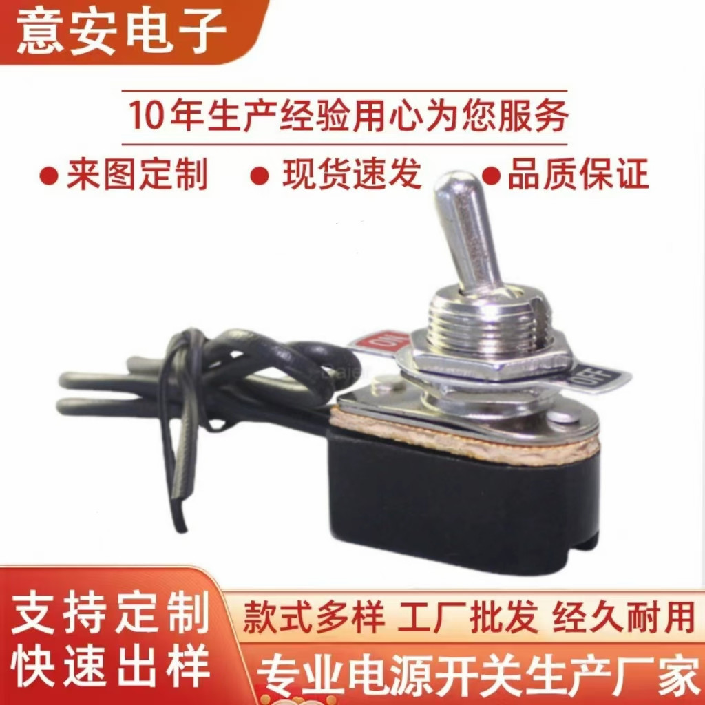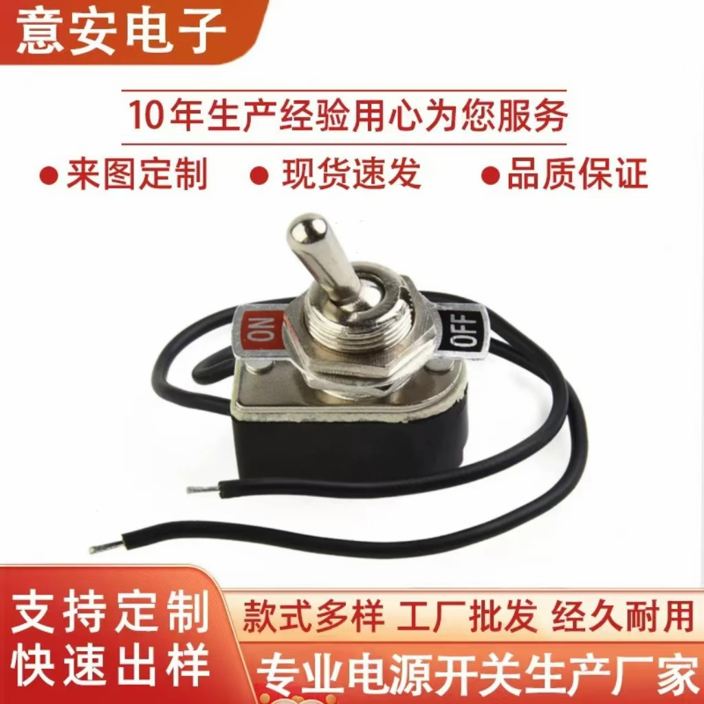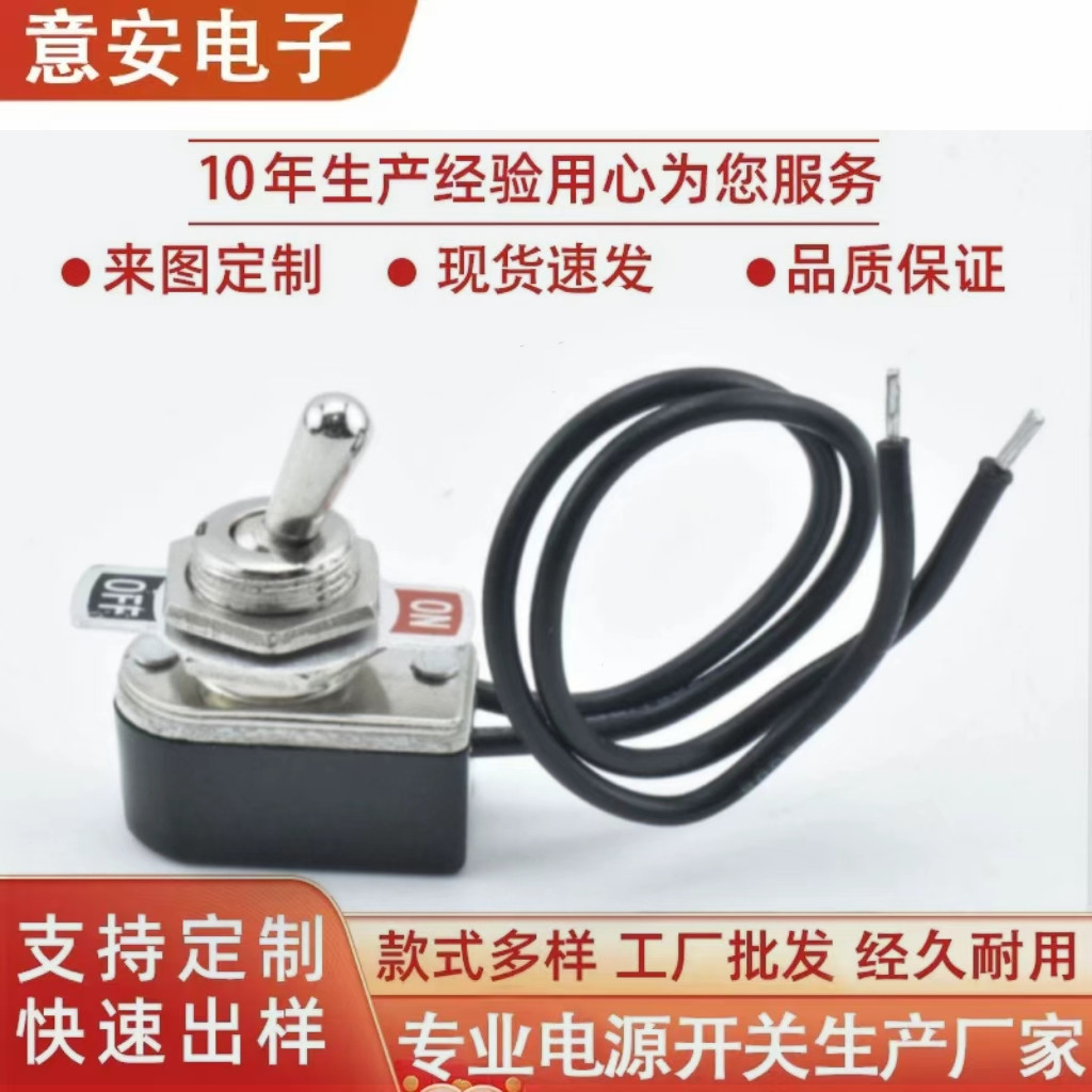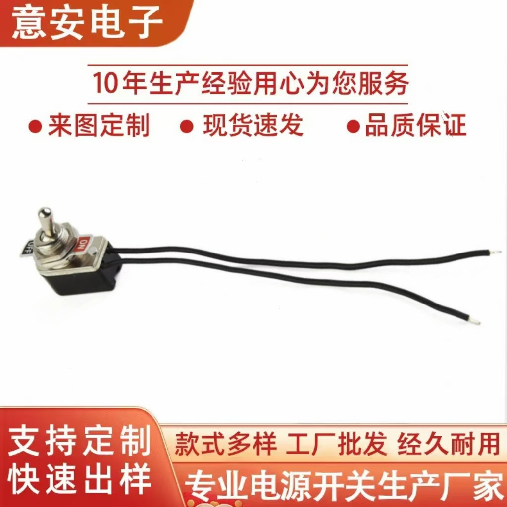 厂家供应KNS-1摇臂钮子开关带线两脚二档电子拨动电源开关