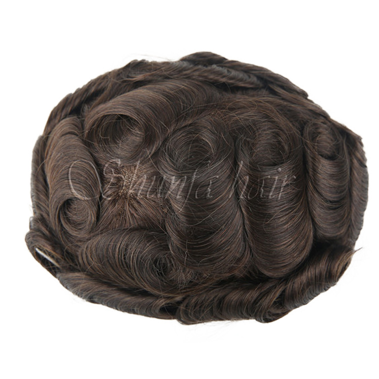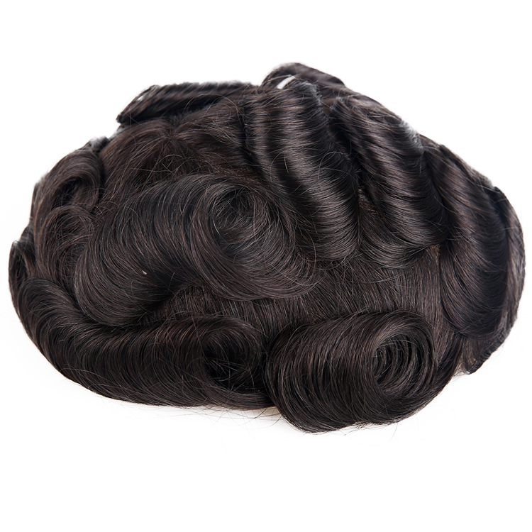 男士假发工厂现货OCT款式蕾丝外贸发块真发卷发仿真发丝帅气真人