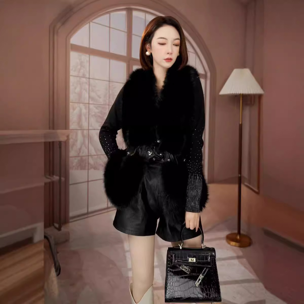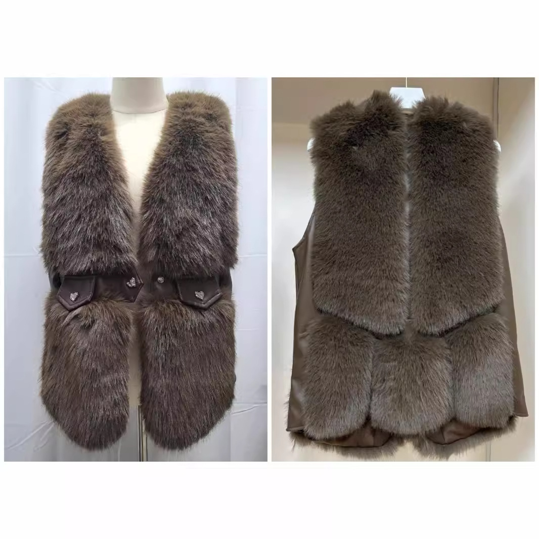 2025冬季新款皮外套马甲女士加厚仿狐狸毛中长款高级感新款毛绒绒