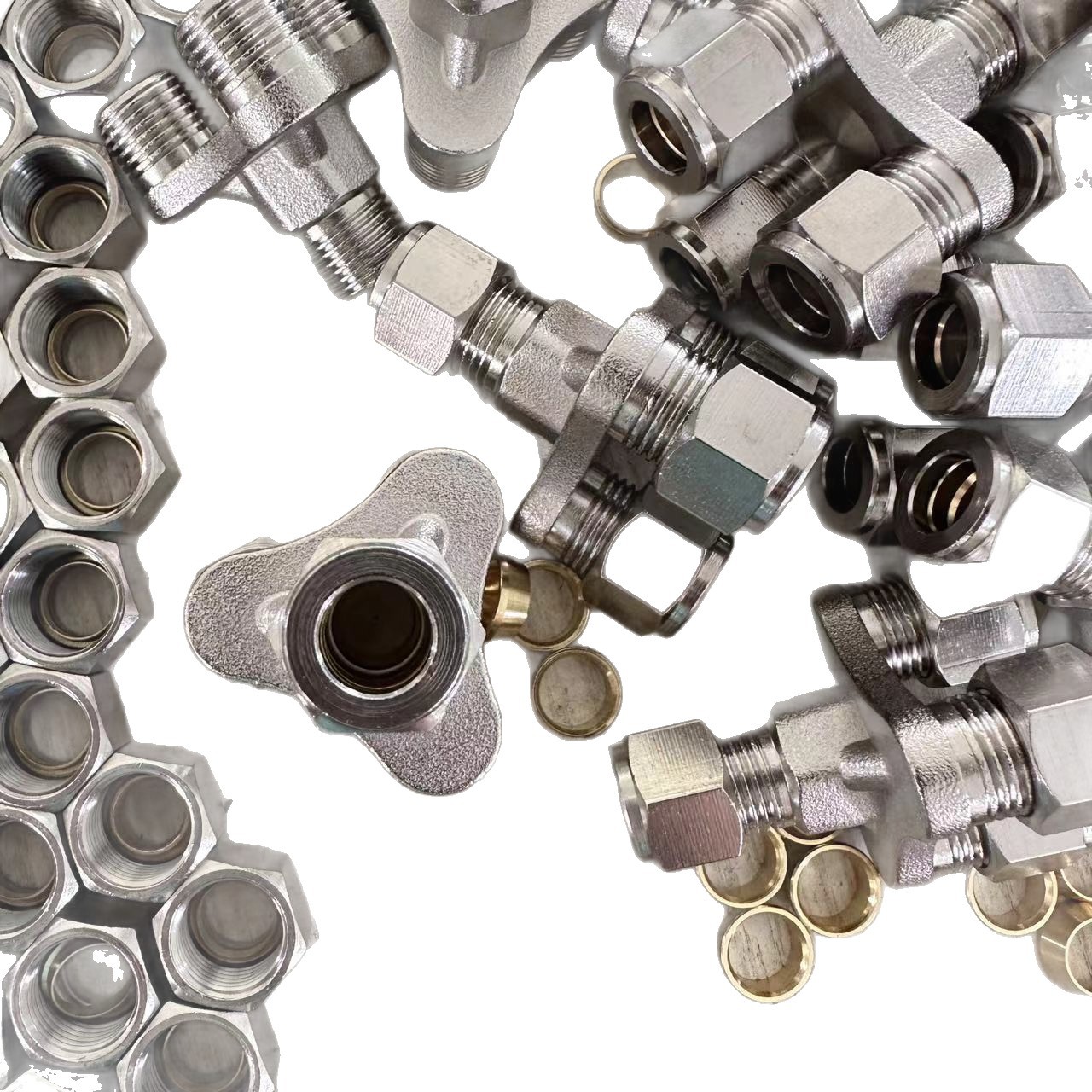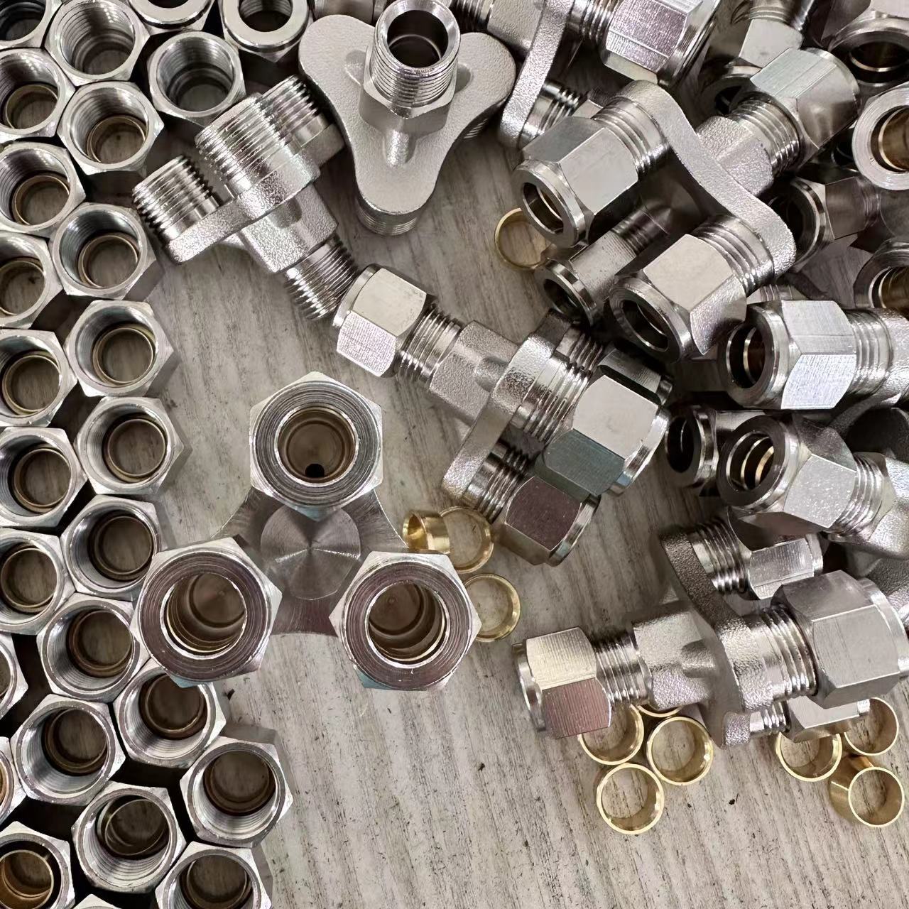 3/8 分水器接头 喷雾接头 一出三底座,卡套式配9.52mm不锈钢管