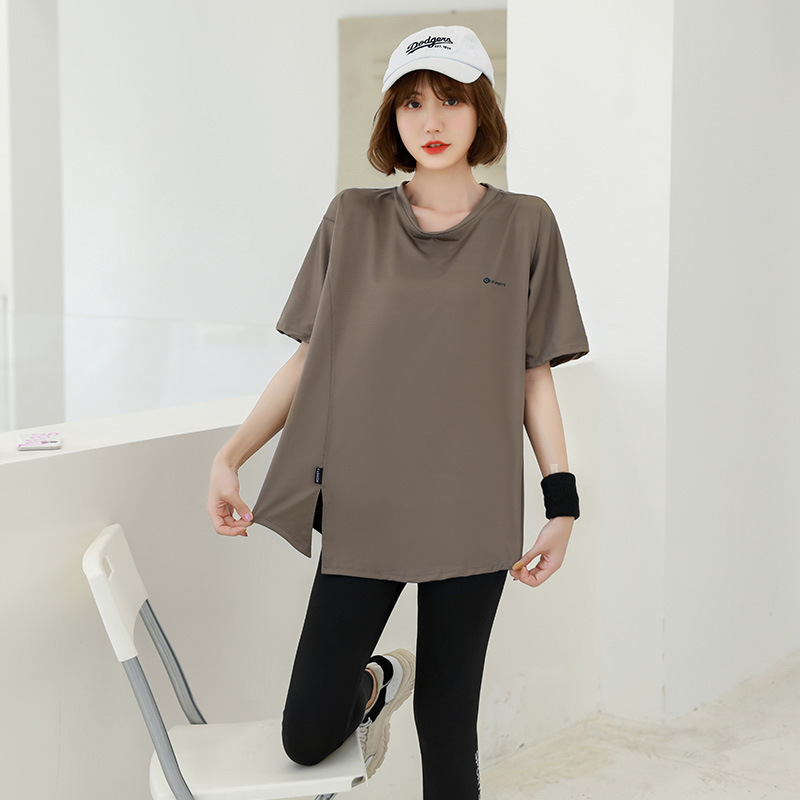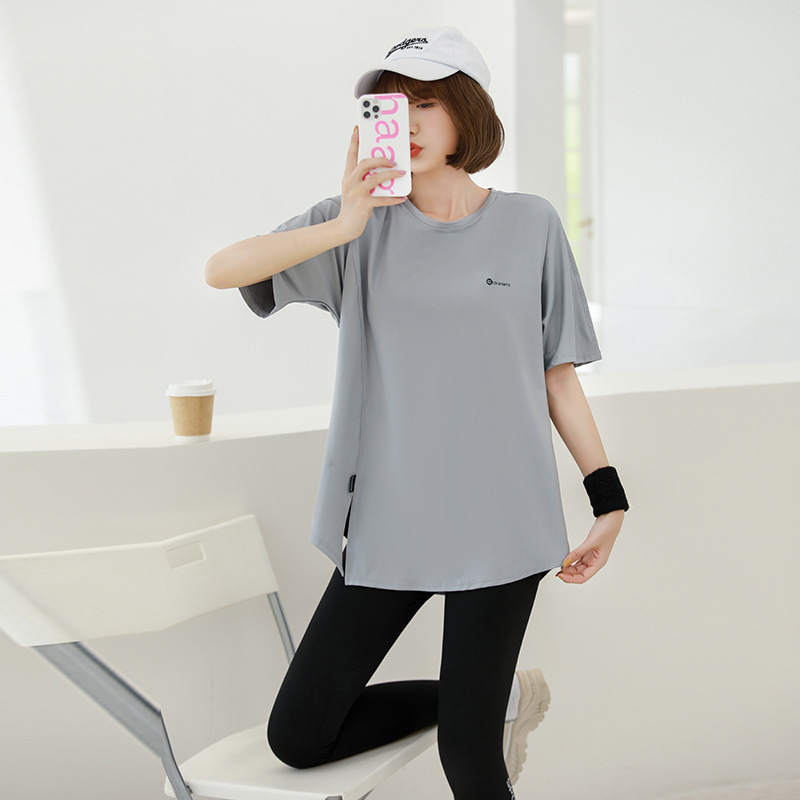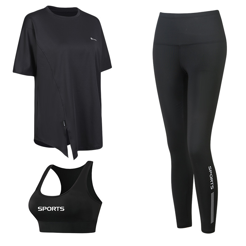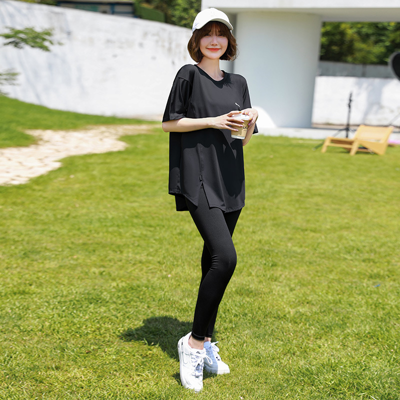 直销大码瑜伽服女夏季短袖套装胖mm200斤中长款运动健身服女