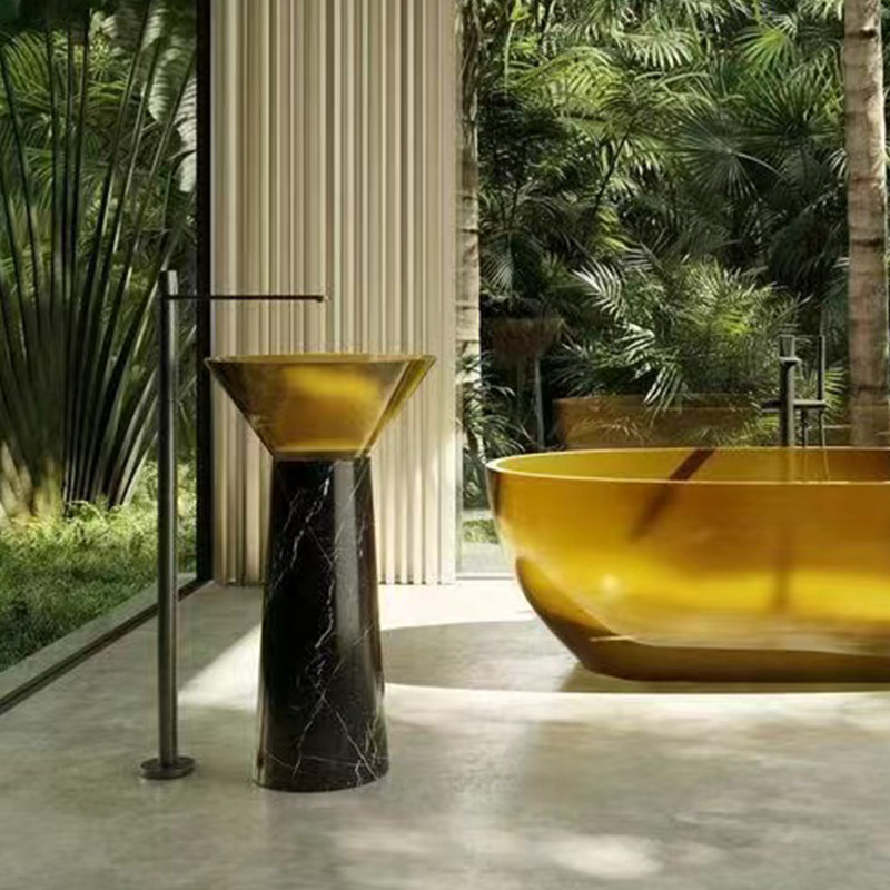 新款透明树脂大理石纹洗手盆酒店别墅民宿创意洗漱台人造石立柱盆