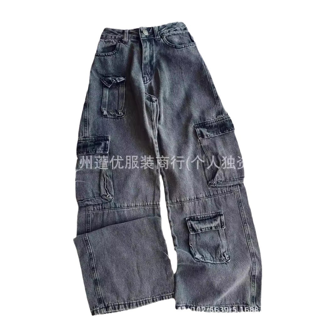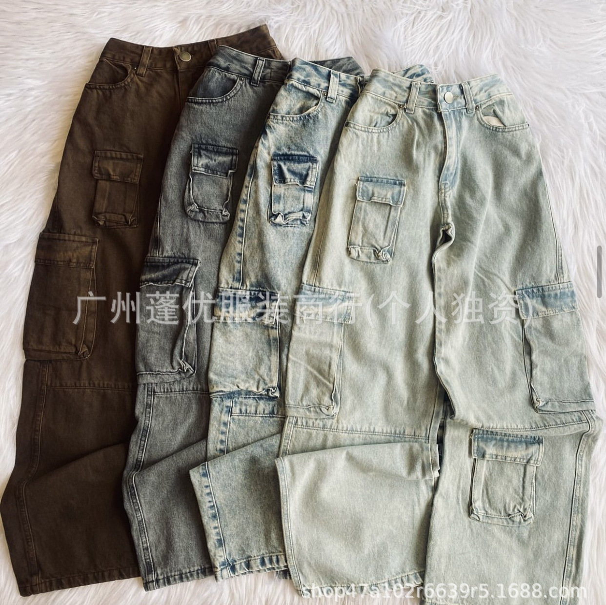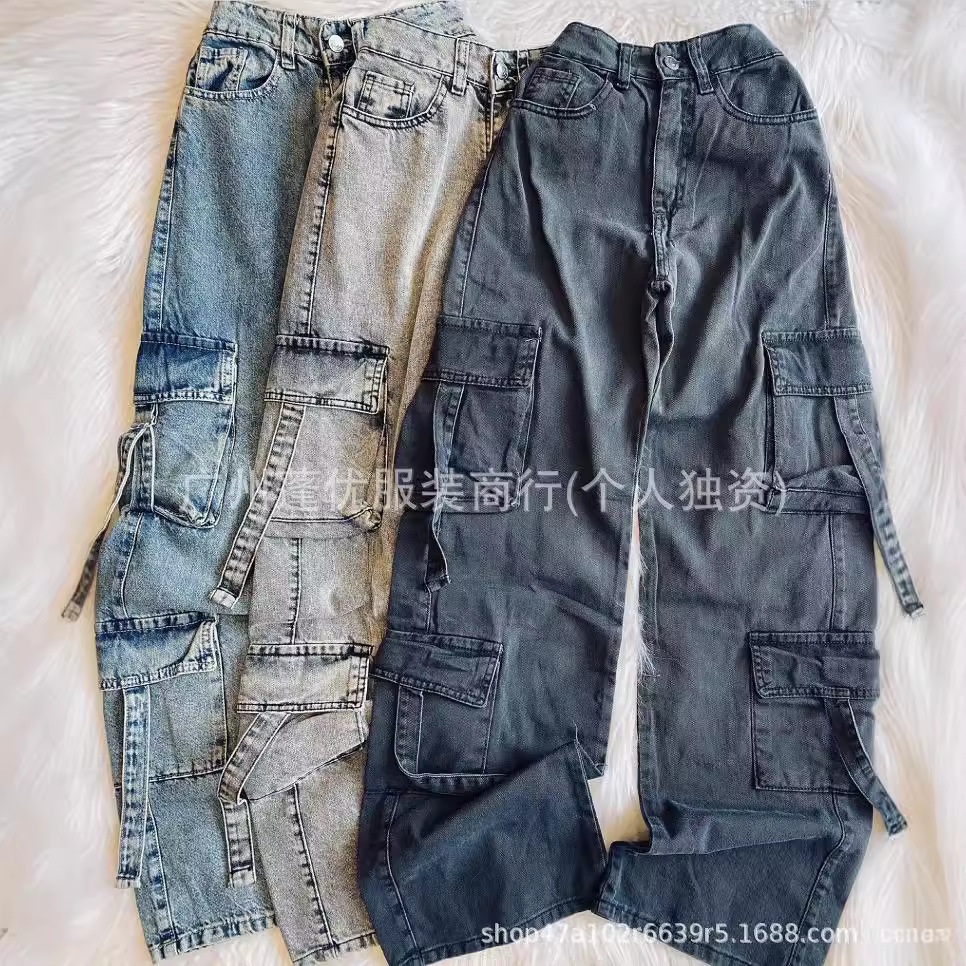 女士牛仔工装长裤多口袋阔腿杂款批发款裤Cargo pants wholesale