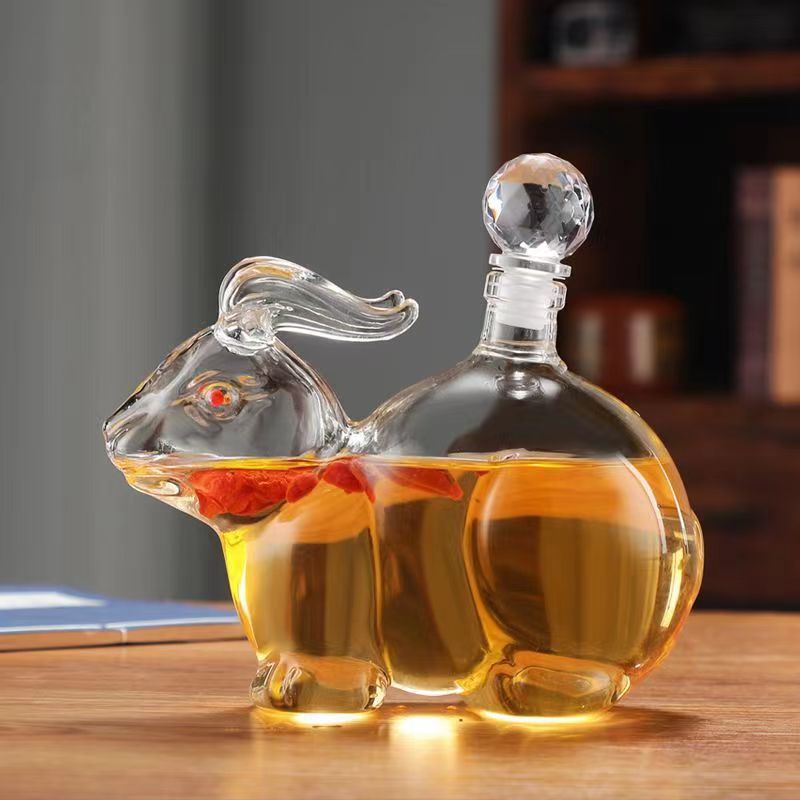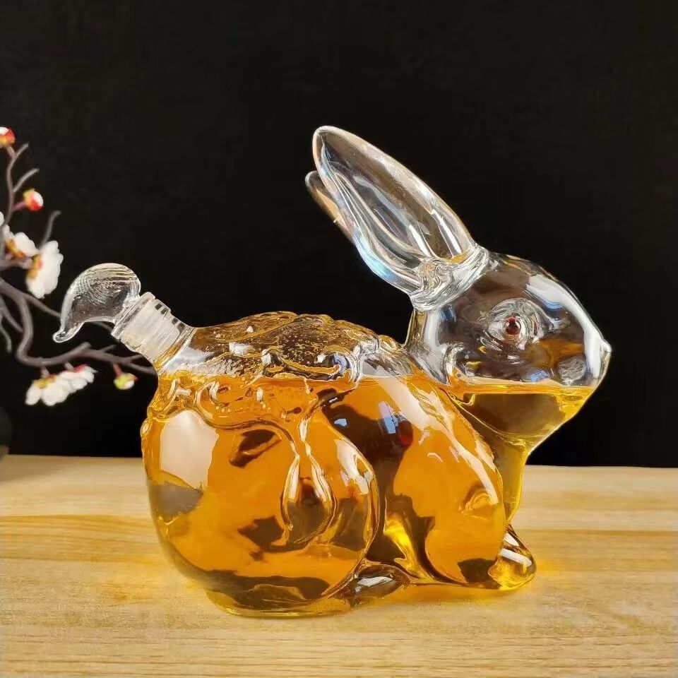 厂家批发动物酒瓶兔子异形高硼硅玻璃酒瓶工艺泡酒瓶十二生肖酒瓶