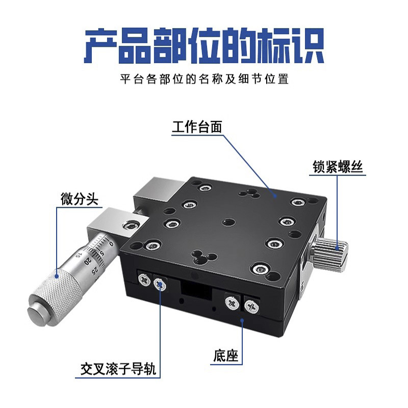 主营产品:手动位移平台千分头交叉导轨型精密微调滑台燕尾槽涡轮蜗杆齿轮齿条型调节平台R轴旋转滑台z轴升降平台