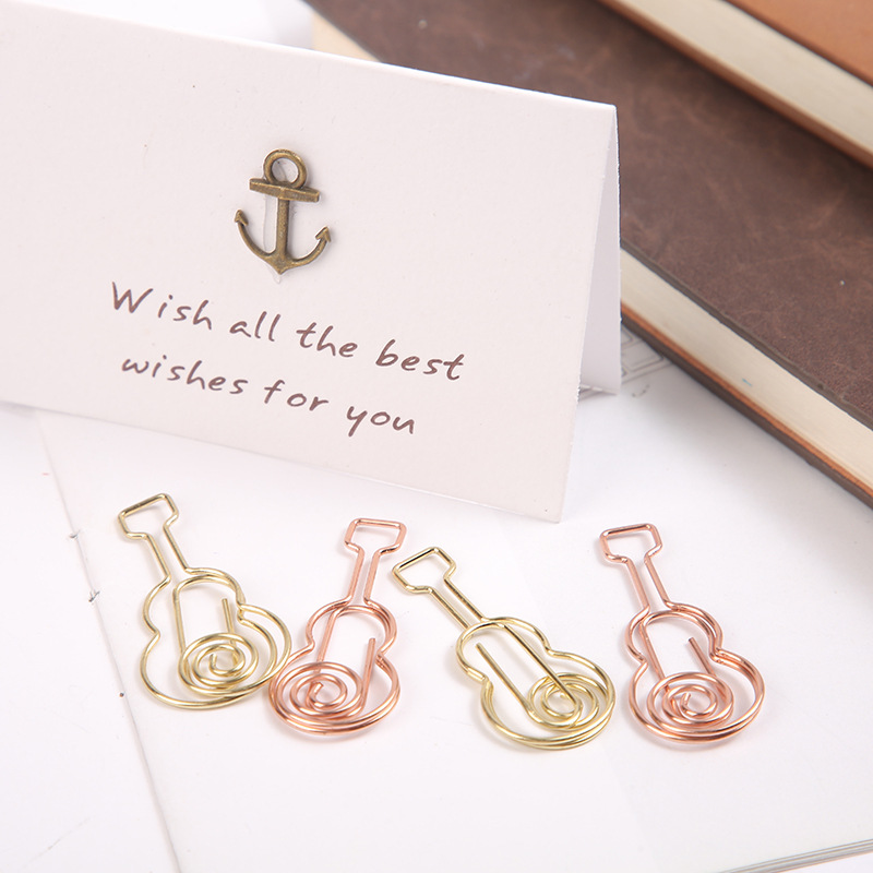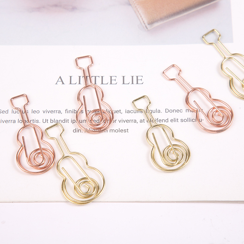金色吉他回形针电镀曲别针卡通音乐吉他回形针文具固定金属型扣针