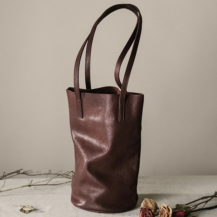 【现货】裘真花筒包慵懒水桶包女真皮腋下单肩包复古头层植鞣牛皮