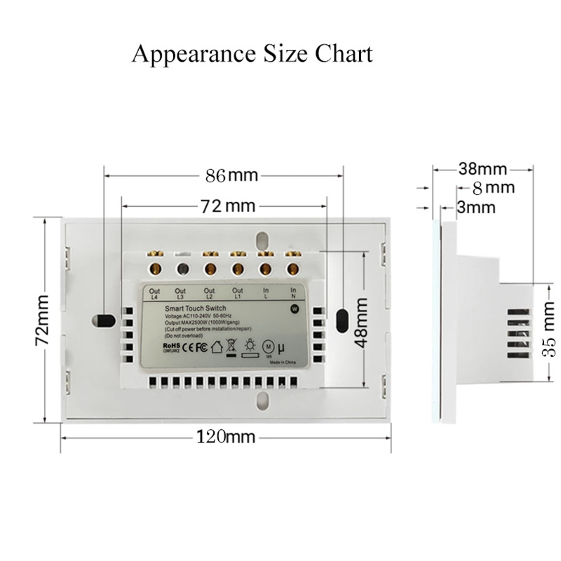 型号 | 120-E-Welink 零火 wifi3路白色 | | 型号 | 120-E-Welink 零火wifi 3路黑色 |