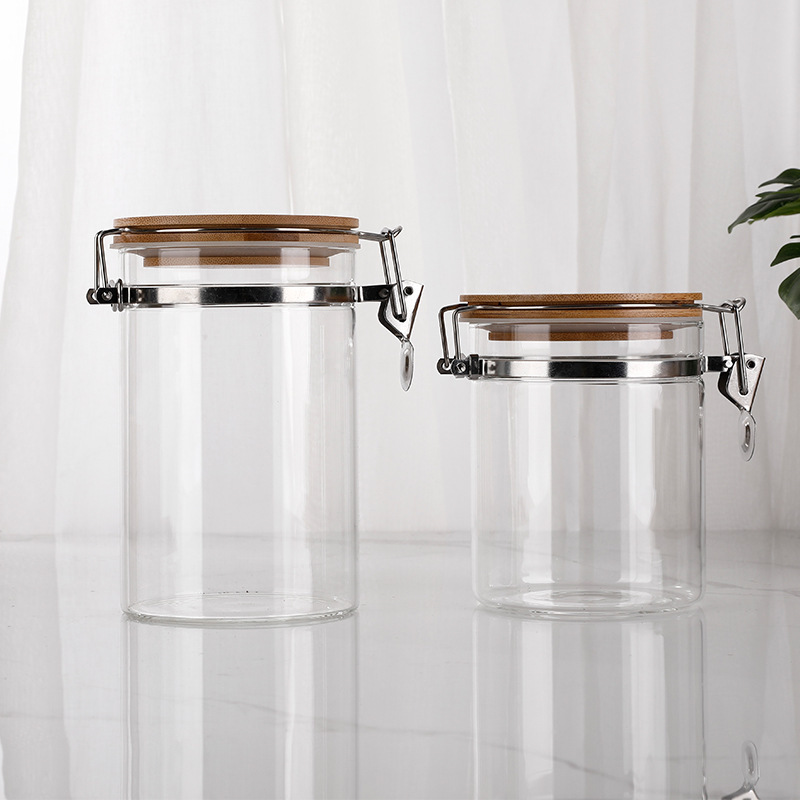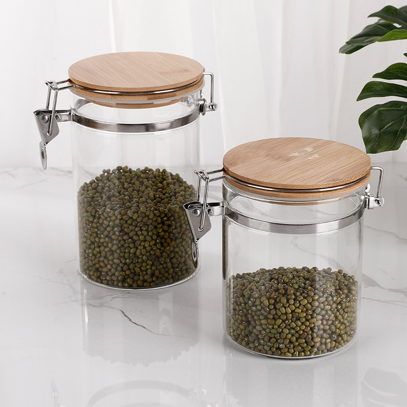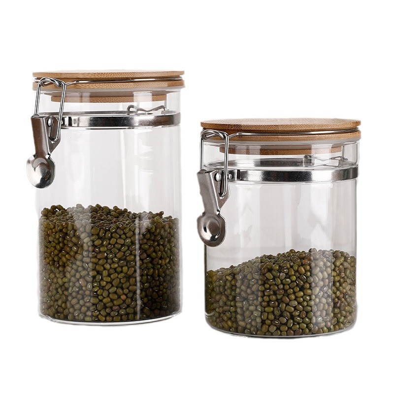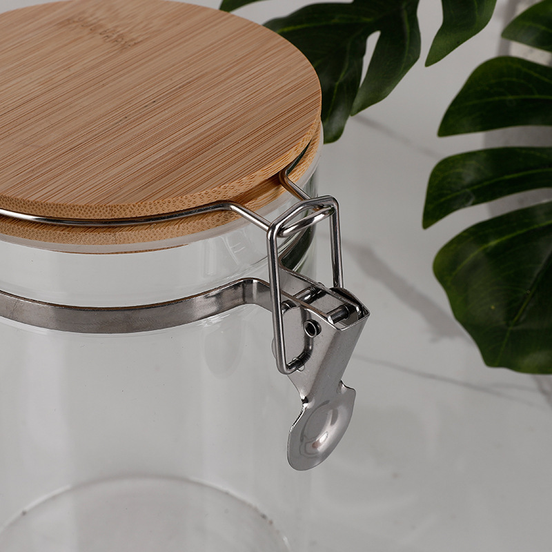 竹盖带卡扣储物密封收纳罐不锈钢扣罐酱菜瓶咖啡储物罐可定制