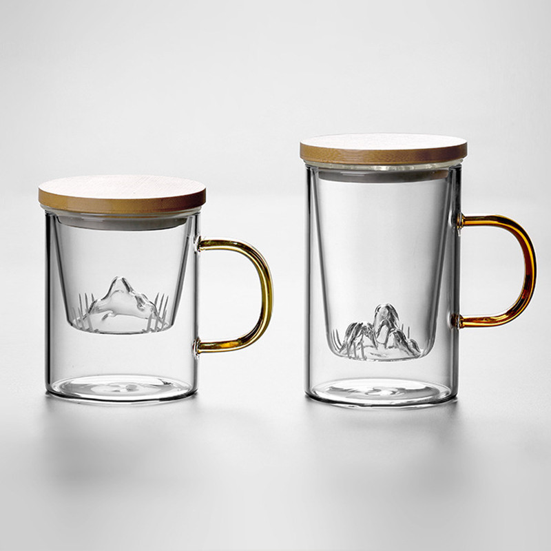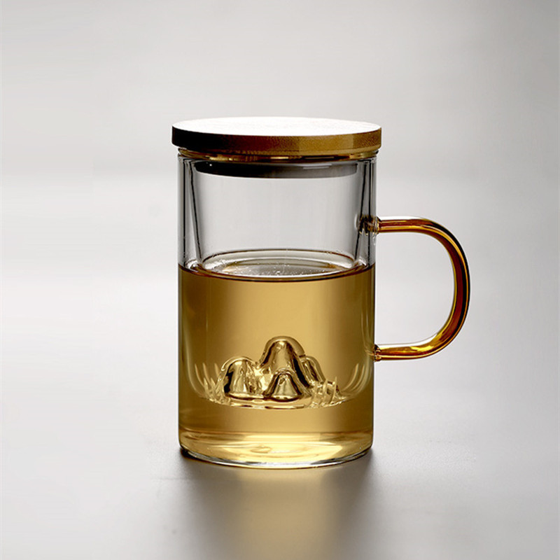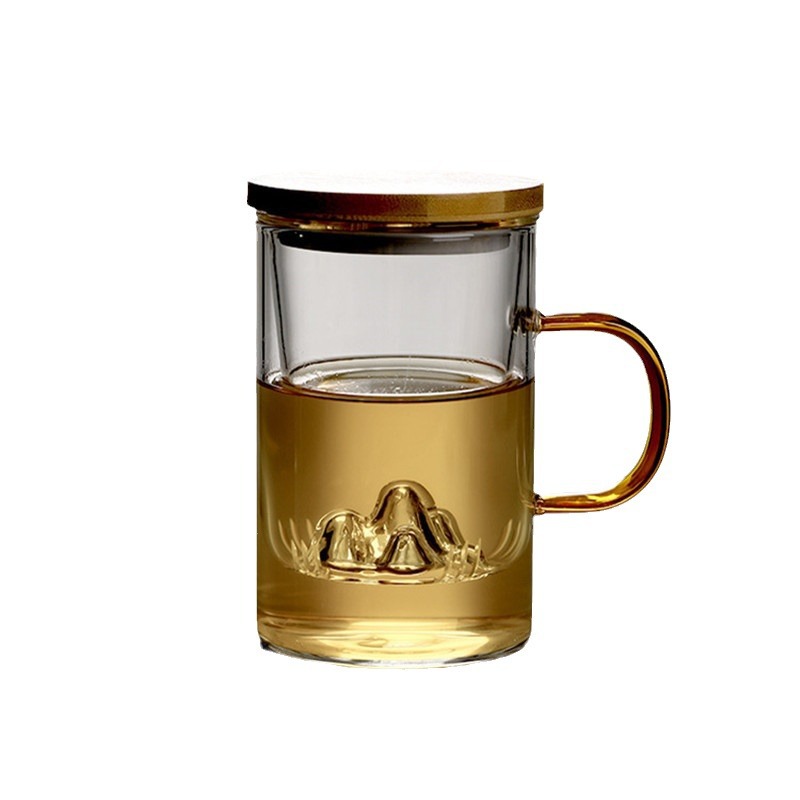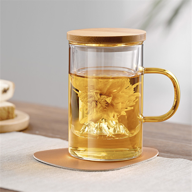透明玻璃杯家用花茶杯耐热过滤带把手男女办公杯竹木盖玻璃泡茶杯