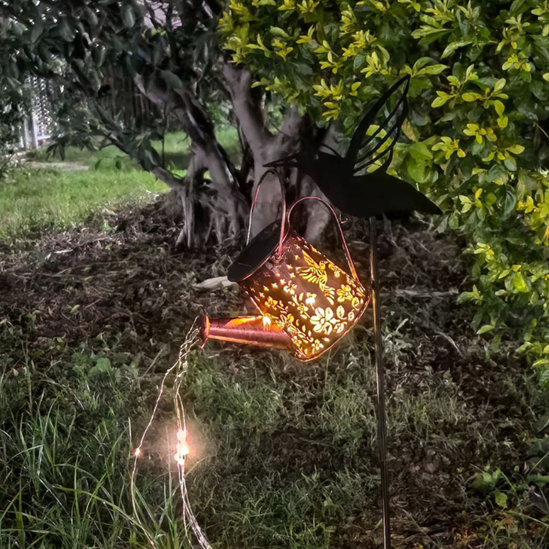 跨境太阳能蜂鸟水壶灯地插庭院灯 户外铁艺喷壶花园灯装饰景观灯