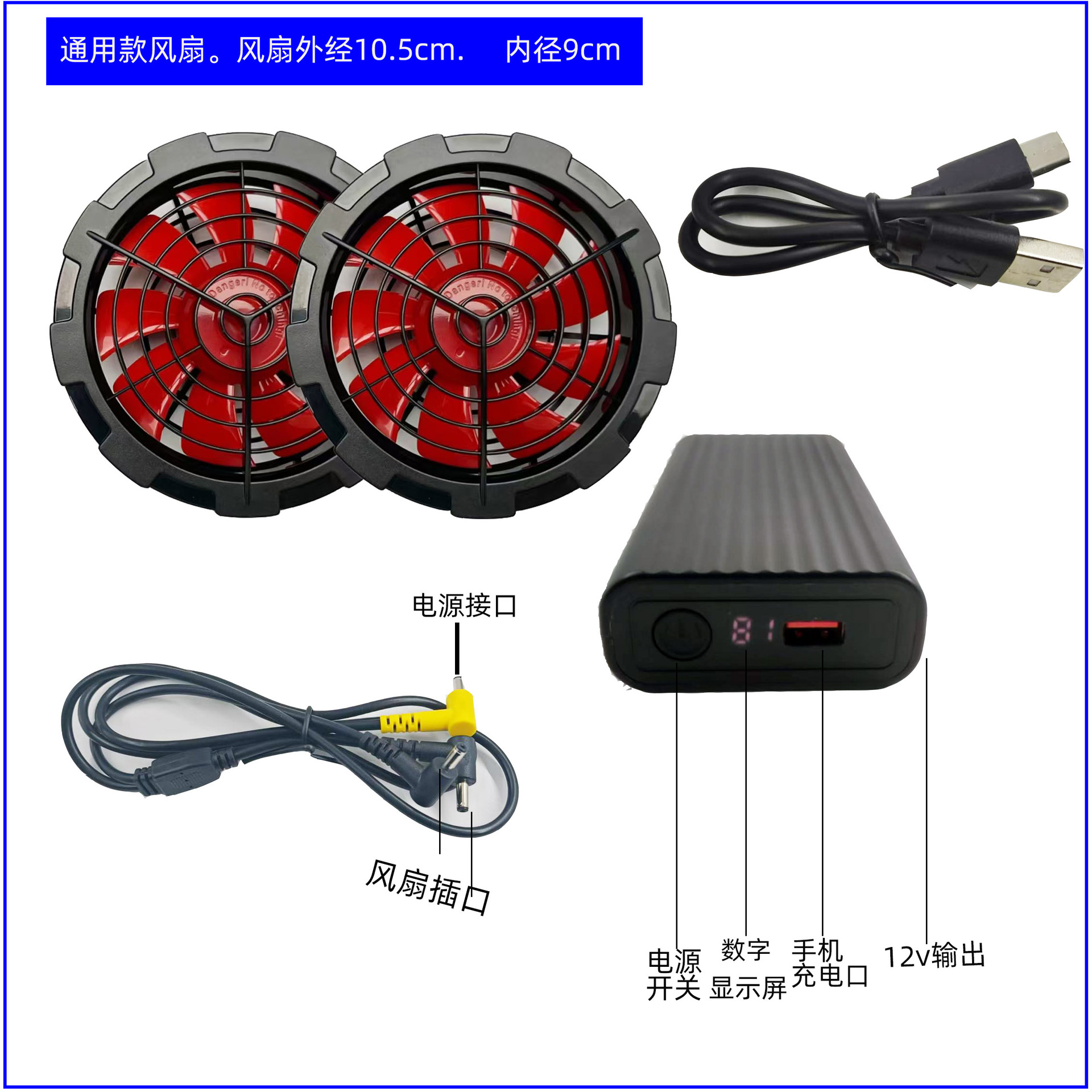 工厂现货空调服电池整套配件12v劳保工作服无刷12v风扇三通线省电