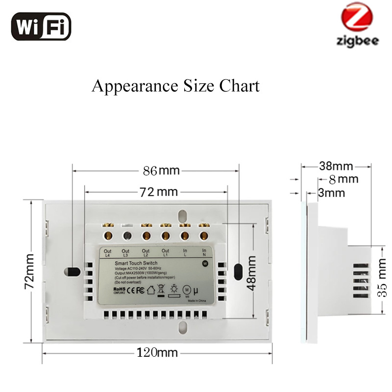 | 型号 | 120Zigbee-零火 3路金色 | 型号 | 120Zigbee-零火 4路白色 |