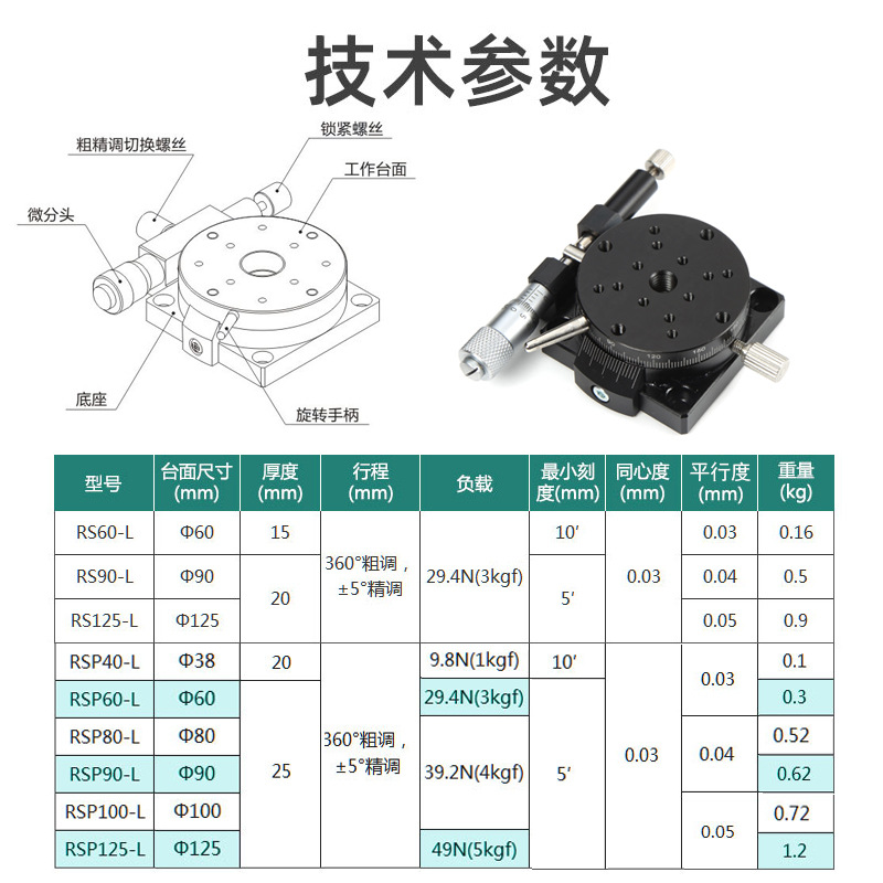 | 行程(移动量) | 360°粗调 ±5°精调 | 滑台材质 | 铝合金 |