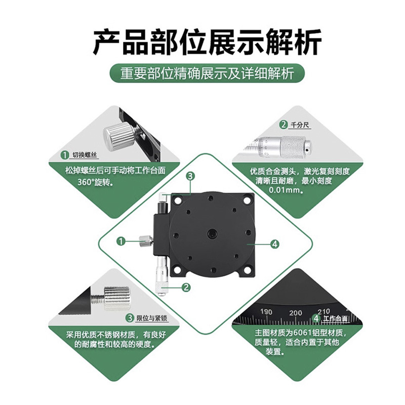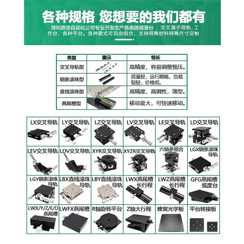 主营产品:手动位移平台千分头交叉导轨型精密微调滑台燕尾槽涡轮蜗杆齿轮齿条型调节平台R轴旋转滑台z轴升降平台