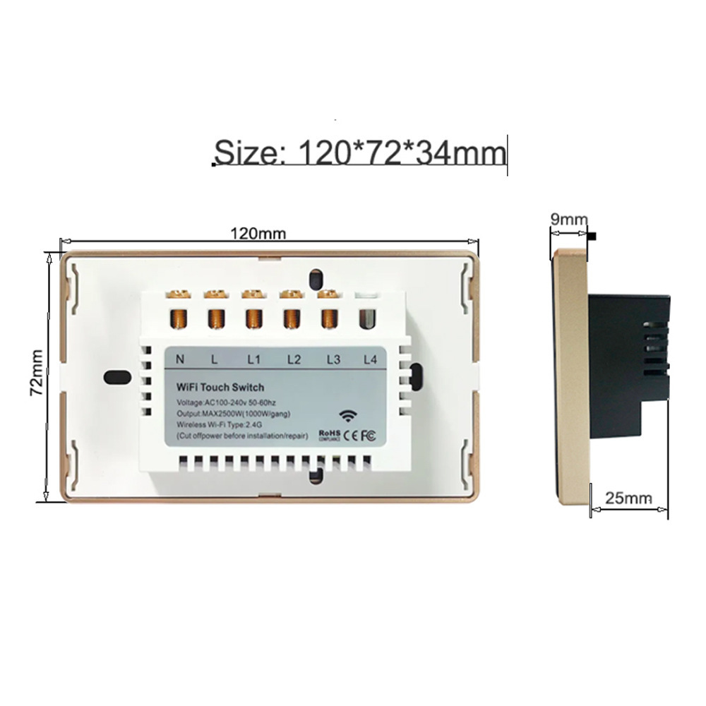 | 型号 | 120WIFI-零火 3路金边黑色 | 型号 | 120WIFI-零火 4路金边白色 |