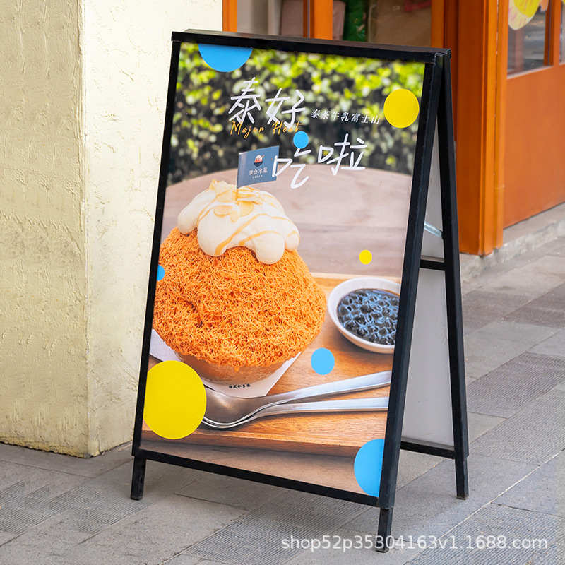 | 类型 | 铁质手提海报架 | 用途 | 户外促销 商场宣传 奶茶店商品展示 |