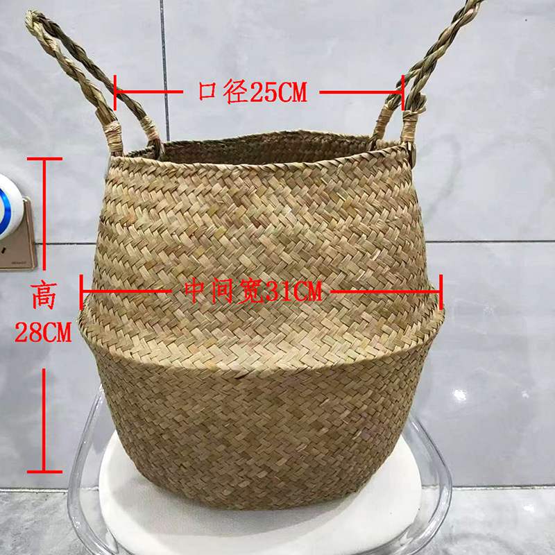 肚径31欧式草编织篮植物装饰草编筐草编双层大肚篮草编收纳篮批发