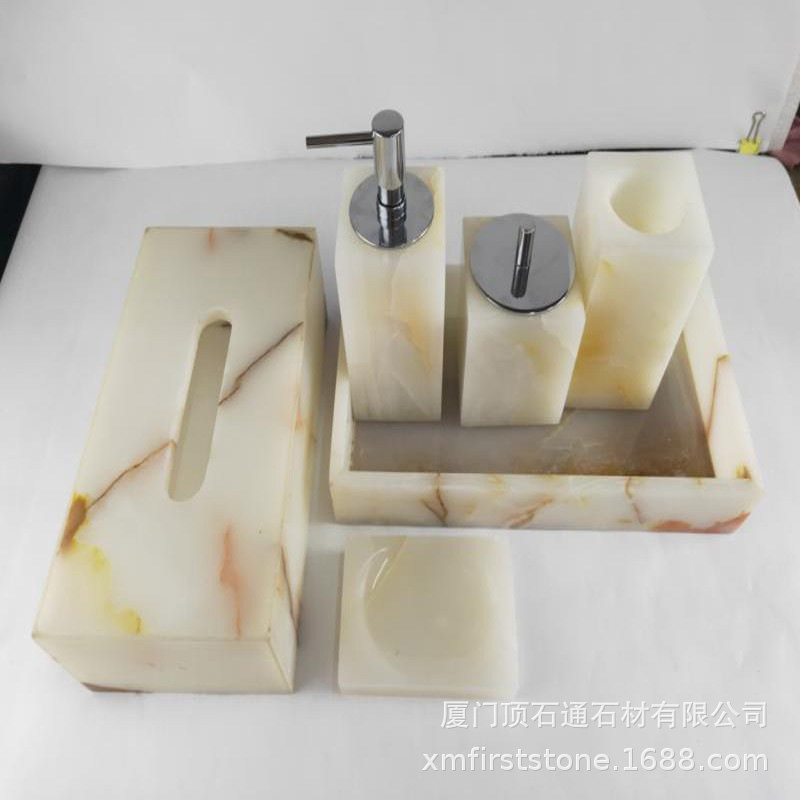 天然大理石定 制卫浴洗漱用品套装托盘酒店浴室轻奢纸巾盒摆件