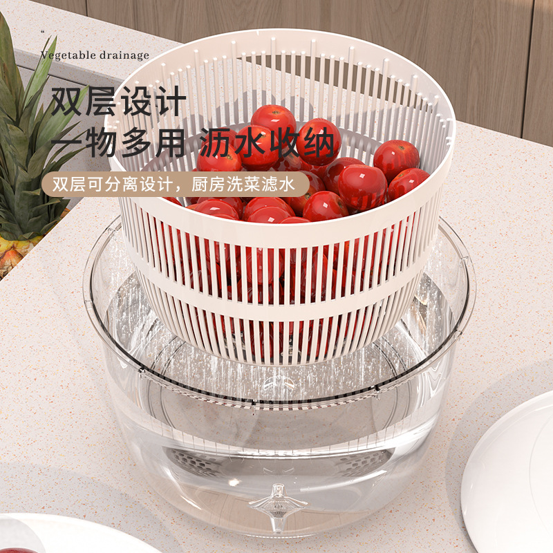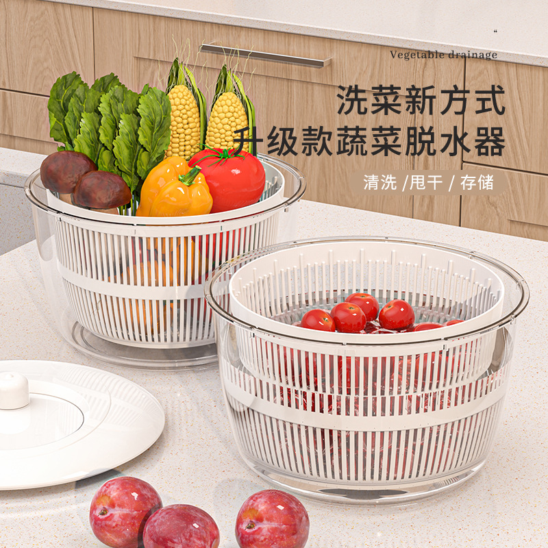 家用多功能蔬菜脱水器水果沙拉甩干机手动旋转沥水篮果蔬脱水神器