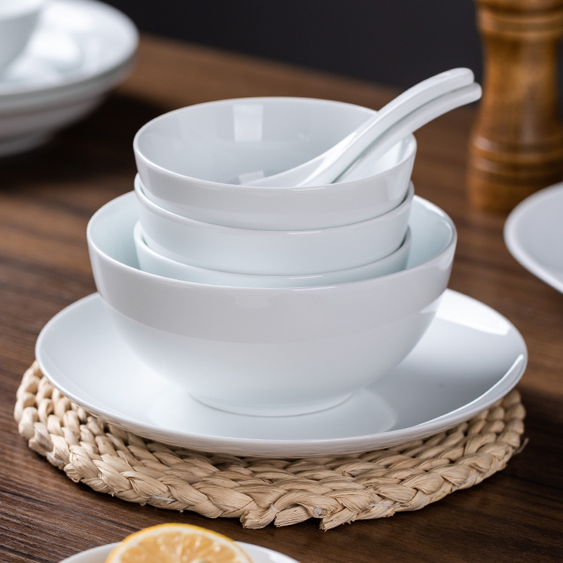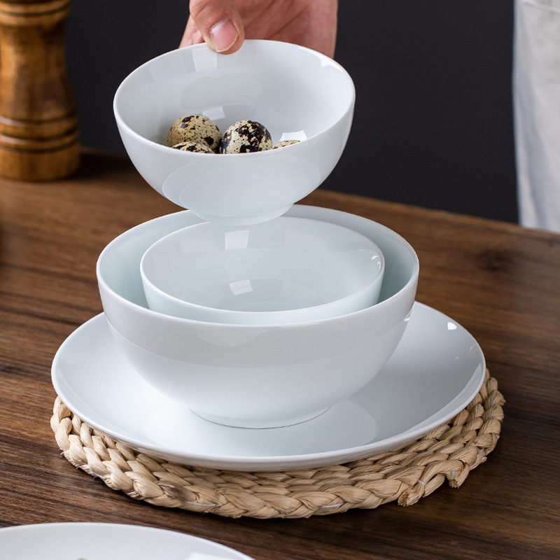 景德镇高温白瓷餐具套装健康家居别墅碗盘勺组合十人份防烫加厚款