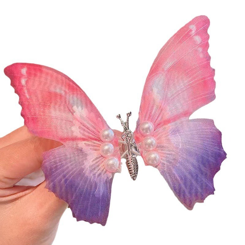 会动的网纱蝴蝶发夹子儿童古风汉服发饰灵动蝴蝶边夹古装汉服头饰
