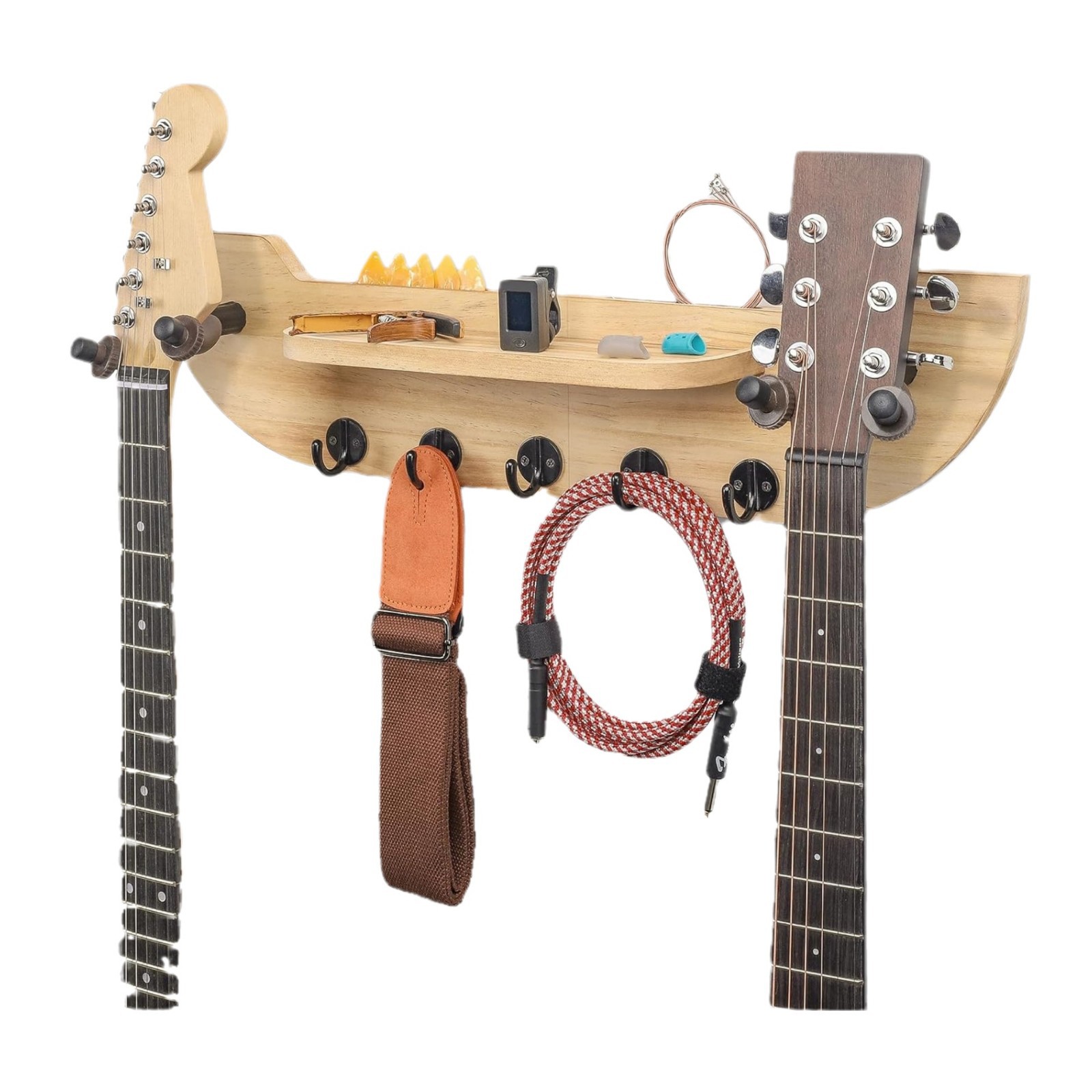 现代木制壁挂式吉他挂架吉他衣架,带2个可旋转橡胶钩收纳实木架