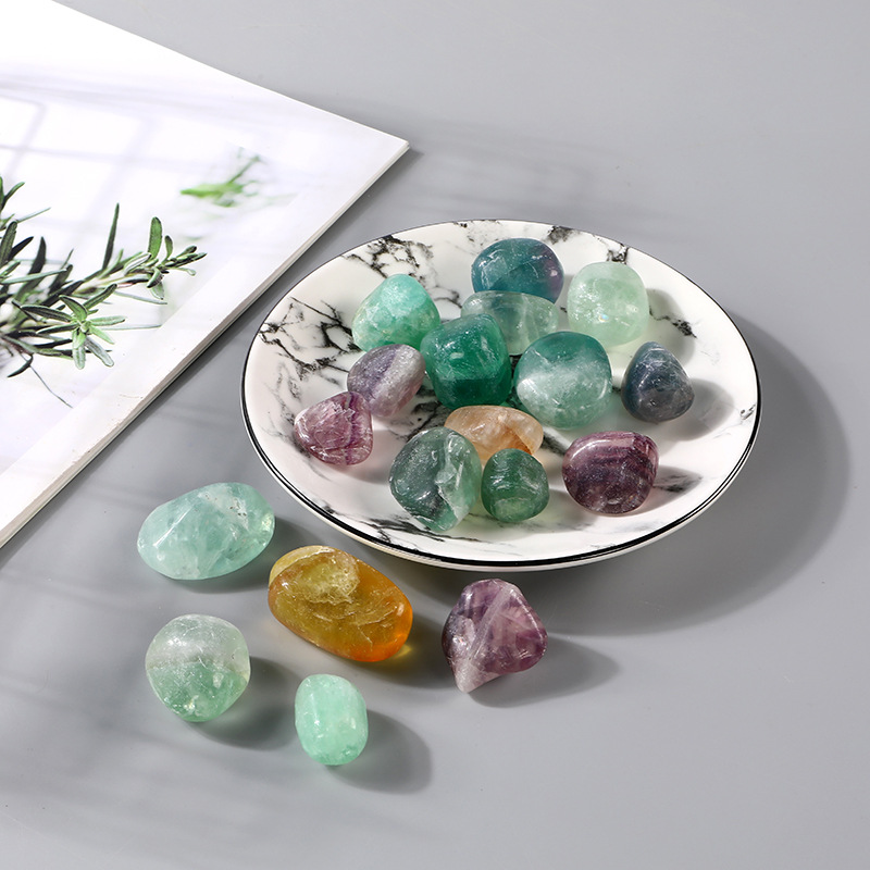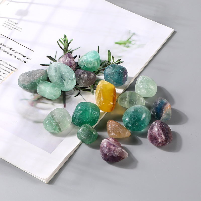 彩萤石水晶原石碎石小滚石 随形香薰扩香石鱼缸DIY造景水晶原石