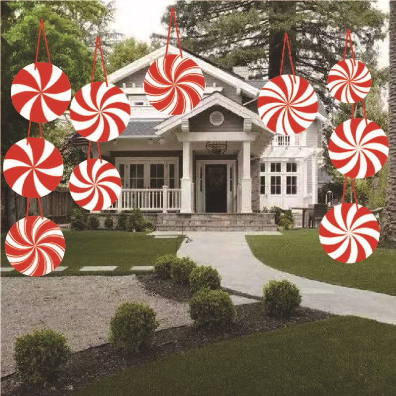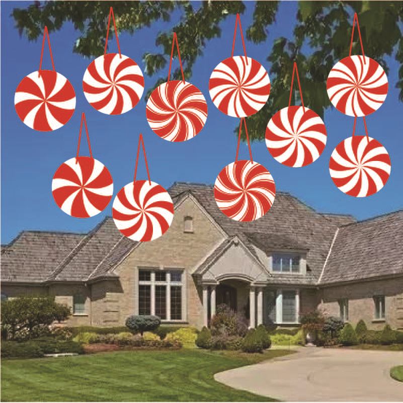 糖果圣诞庭院标志带桩红色薄荷糖果草坪标志圣诞庭院标志露台标志