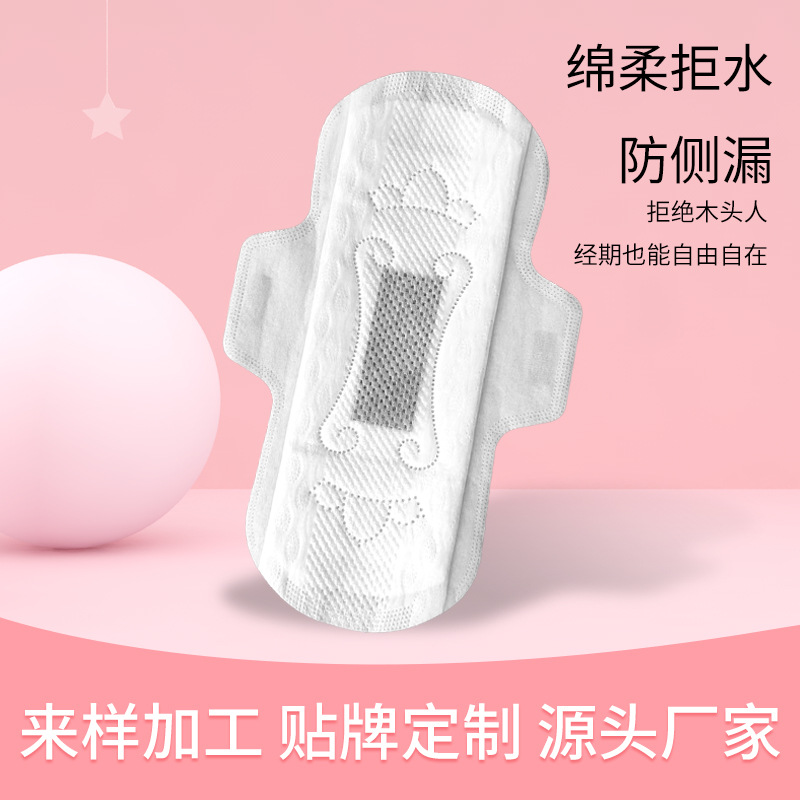 卫生巾定 制网面棉面姨妈巾面层负离子芯片日用夜用护垫源头厂家