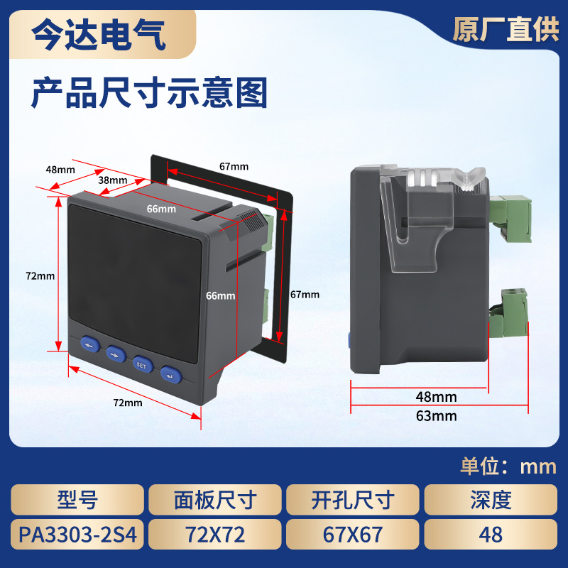 PA3303-2S4(72型开孔67*67三相数码电流表带485通讯)