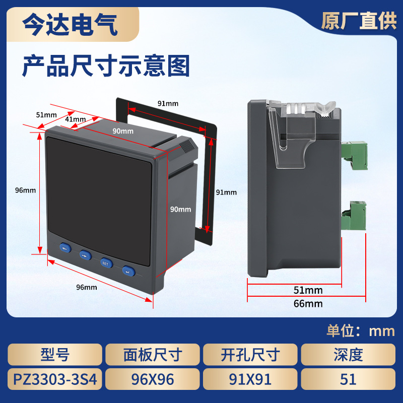 PZ3303-3S4(96型开孔91*91三相数码电压表带485通讯)