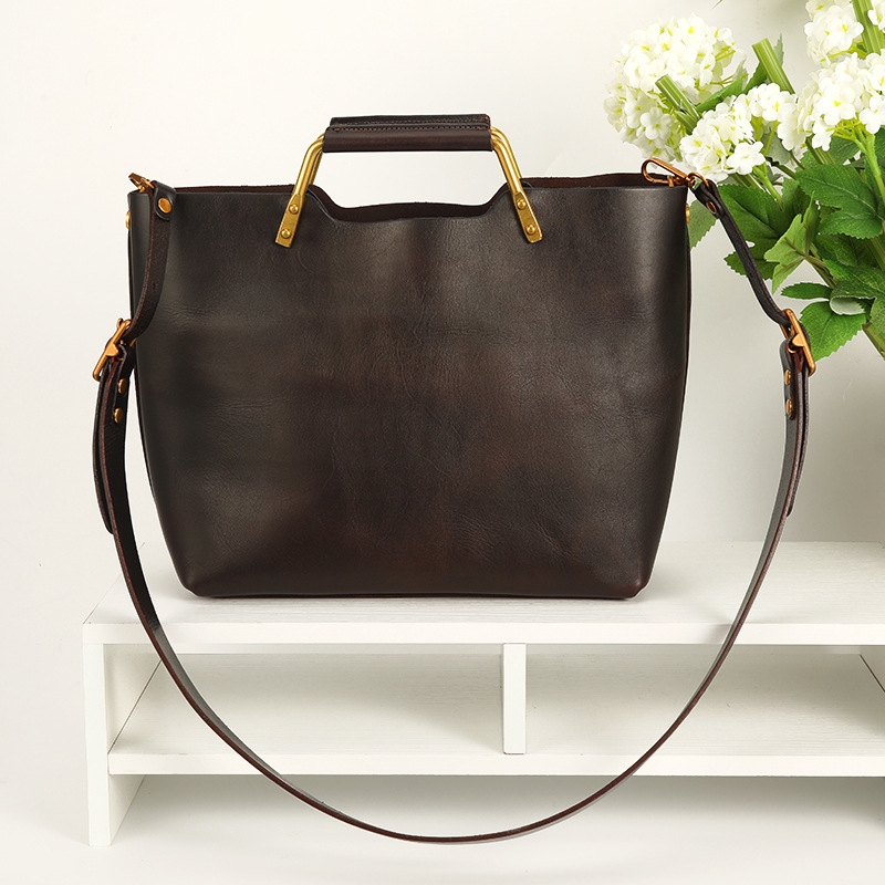 复古真皮斜挎包包 头层植鞣皮手提女包 大容量女士通勤托特包
