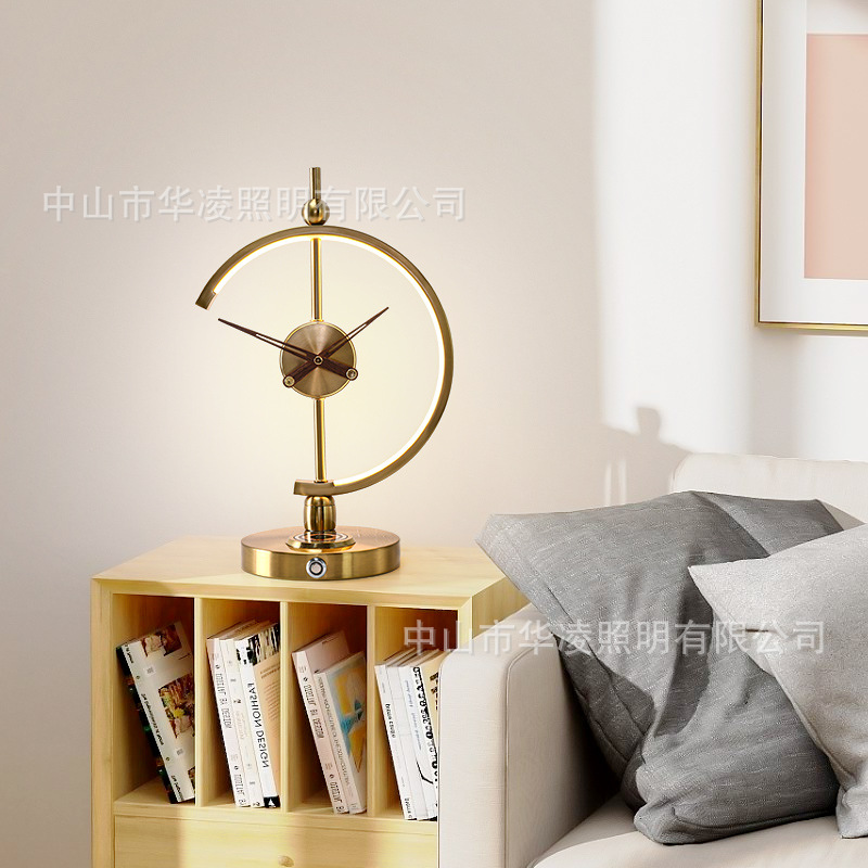 跨境热销现代简约个性时钟台灯无线充电创意复古触摸智能控制摆件
