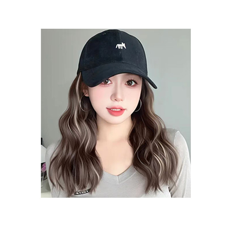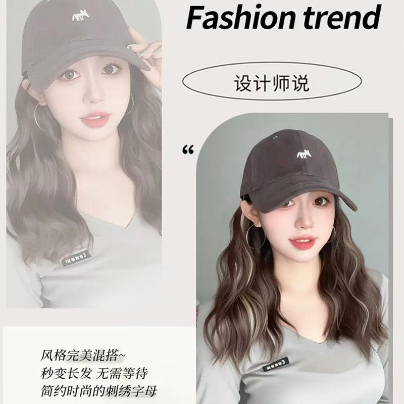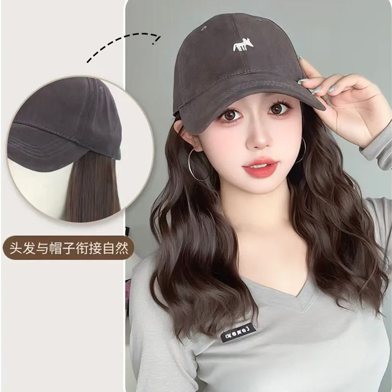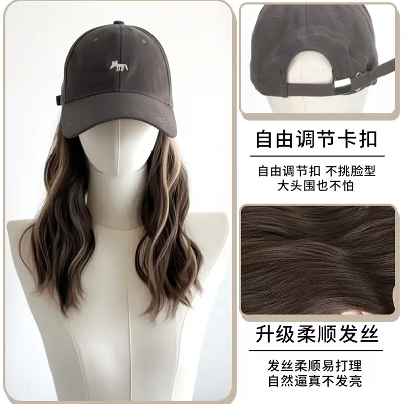 棒球帽子假发 一体式仿真发时尚水波纹假发帽 小狐狸挑染蛋卷假发