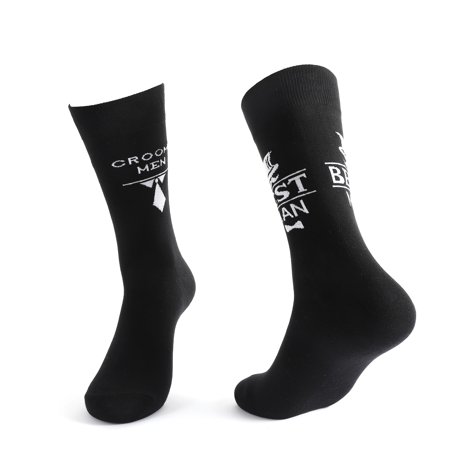 结婚新郎袜子创意字母长筒袜透气吸汗长袜黑色伴郎袜子现货批发