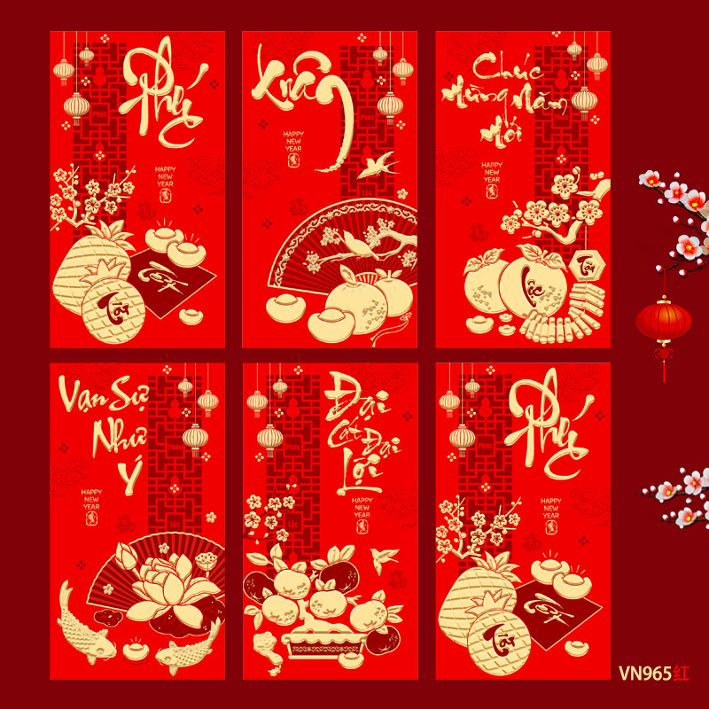| 材质 | 艳红纸、金黄纸 | 货号 | 越南文红包 |