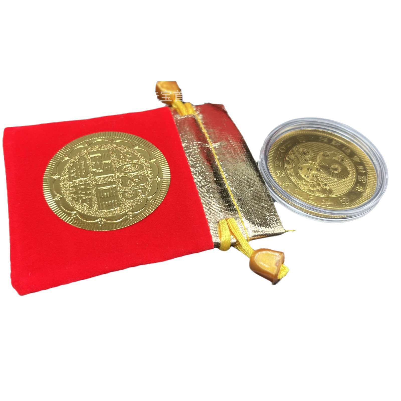| 尺寸 | 单个开运金币 | 尺寸 | 开运金币+布袋装 |