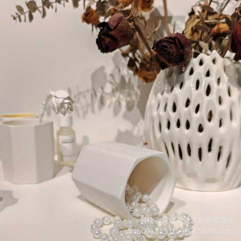 跨境创意简约家居ins风香薰蜡烛杯陶瓷八角杯装饰亚光白瓷摆件