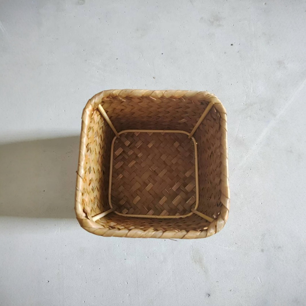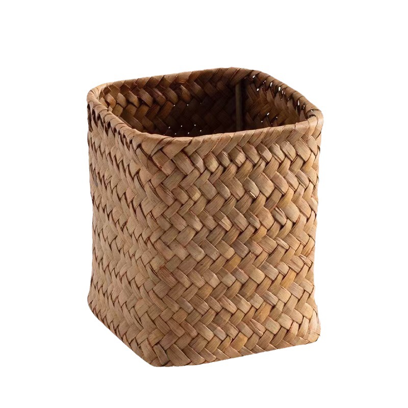 新款草编笔筒内置铁框架时尚简约家居草编篮手工编织笔筒收纳篮