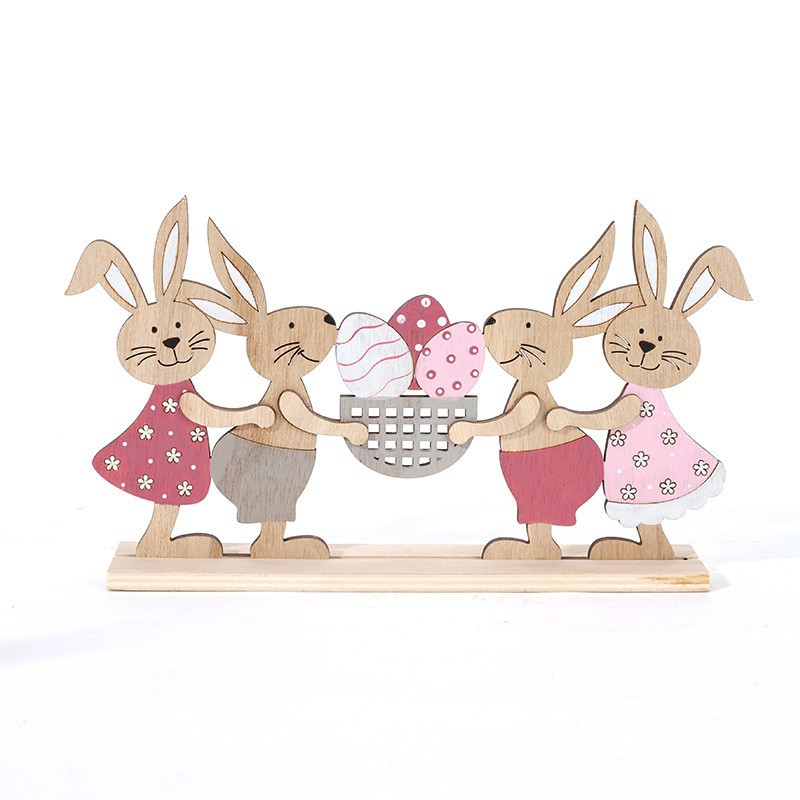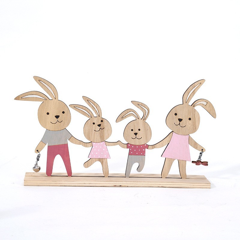 迷你木质小兔子 桌面复活节装饰工艺品 节日英文字母场景橱窗摆件