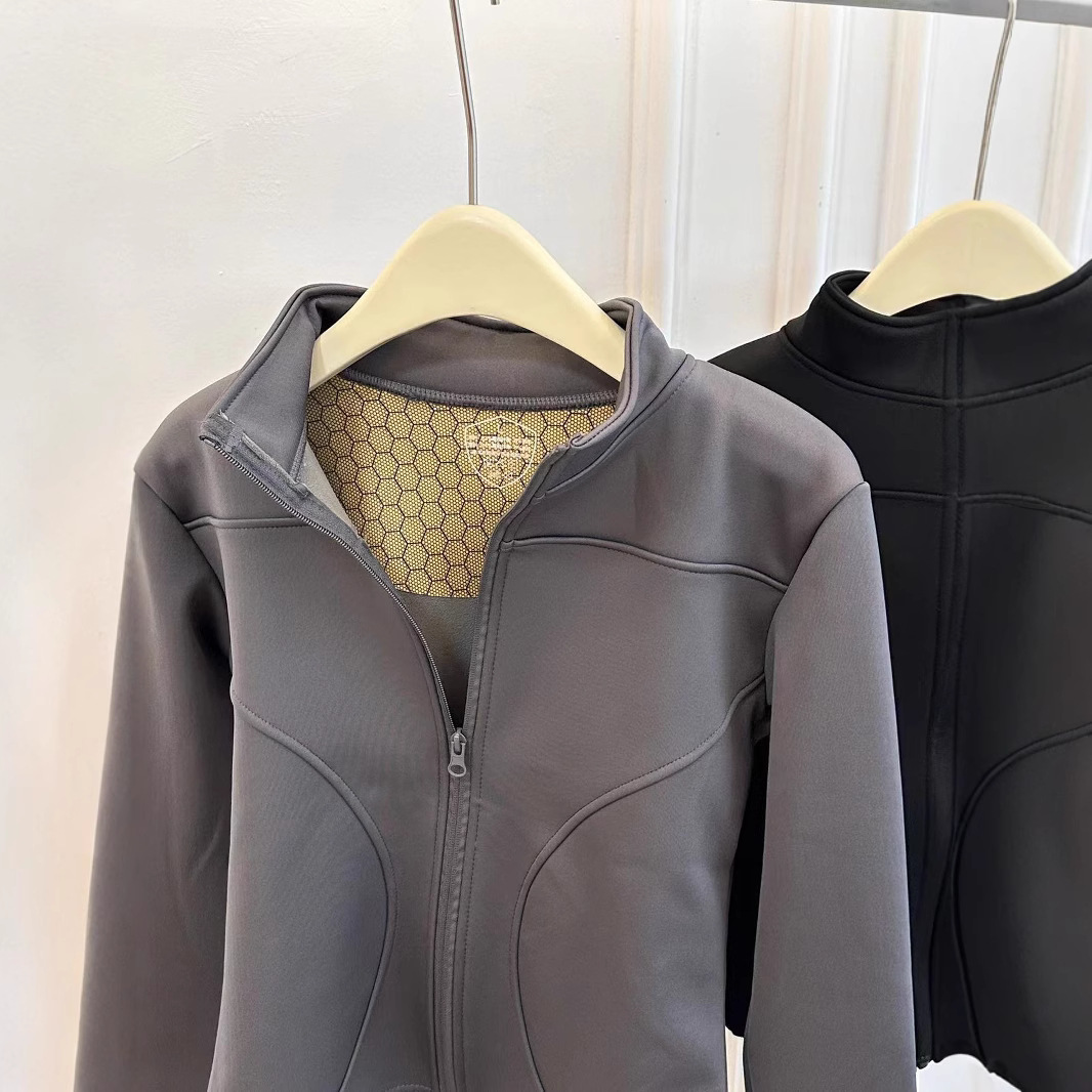 黑金瑜伽防风服加绒加厚黑金贴片修身保暖可外穿女士瑜伽衣女