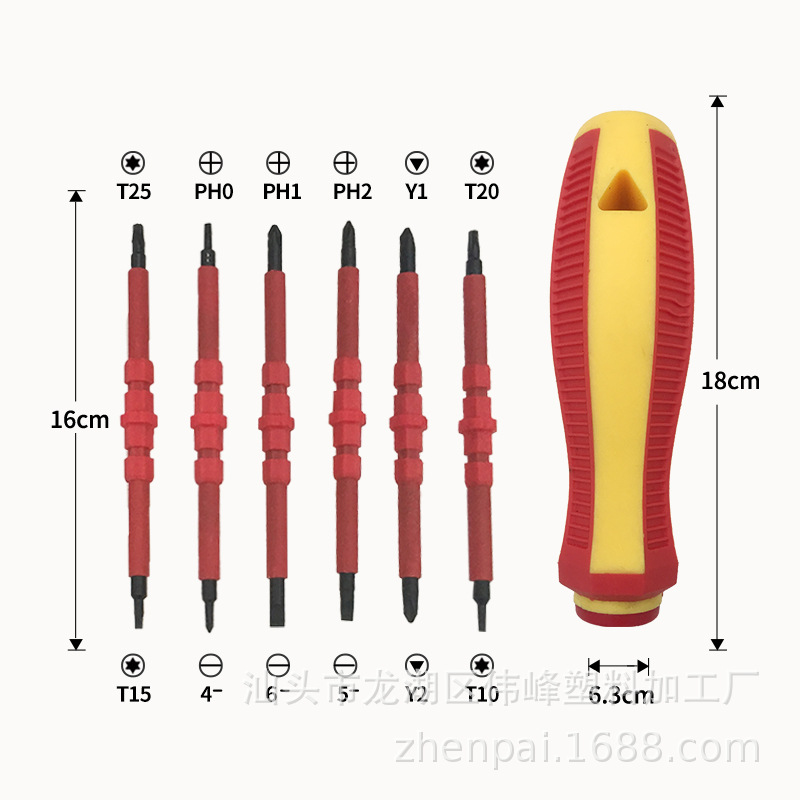 电工绝缘螺丝刀12合1组合套装多头型 多功能维修组合工具螺丝批