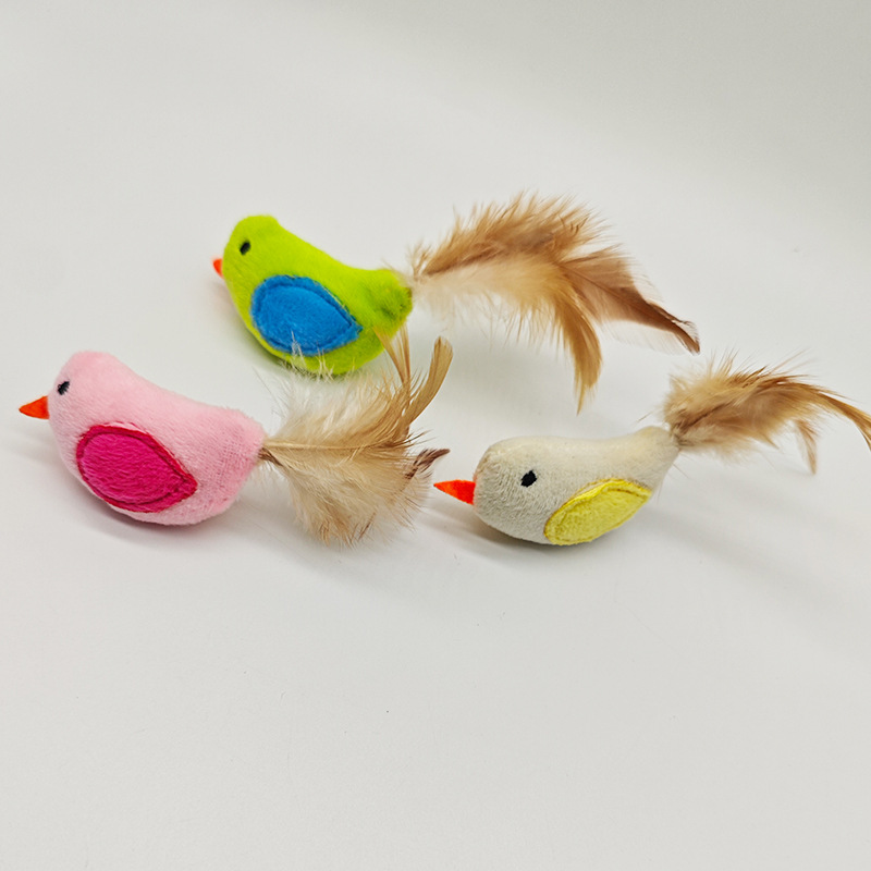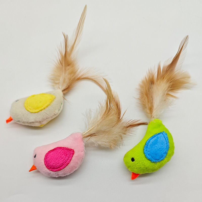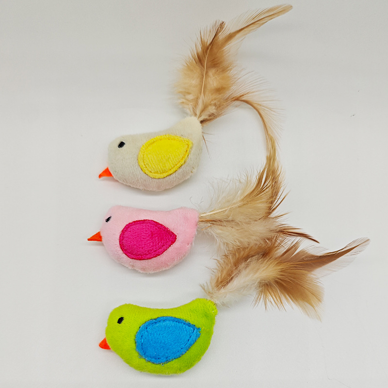 羽毛小鸡宠物玩具猫咪啃咬解闷自嗨毛绒小鸡猫玩具羽毛尾小鸡玩具