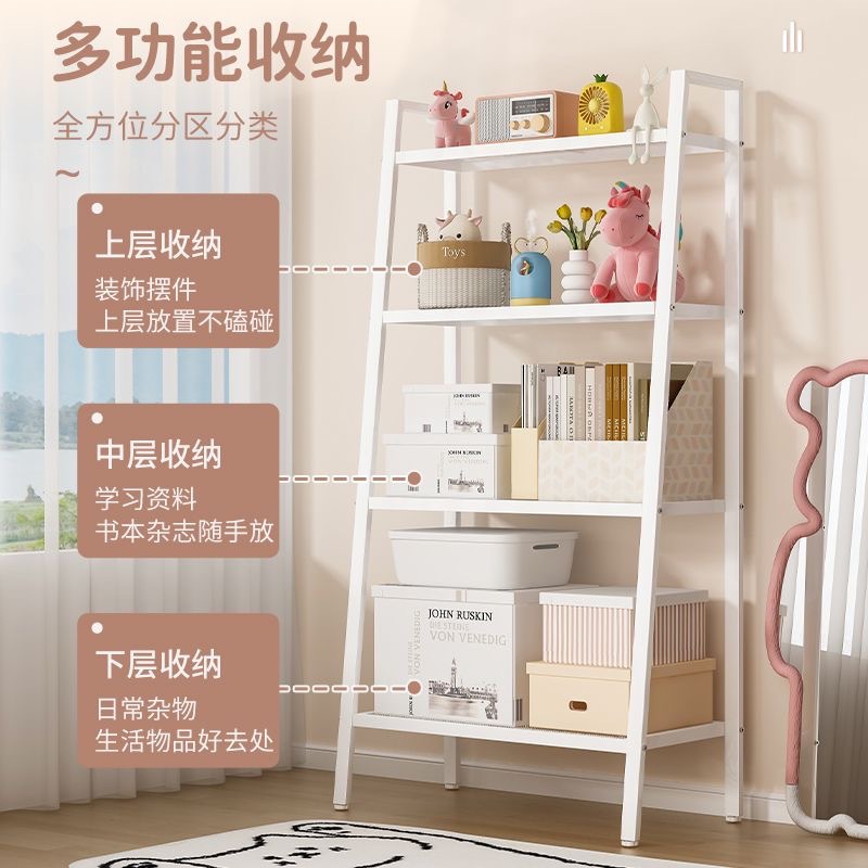 ins风书架置物架落地卧室家用简约现代铁艺收纳架客厅展示梯形架