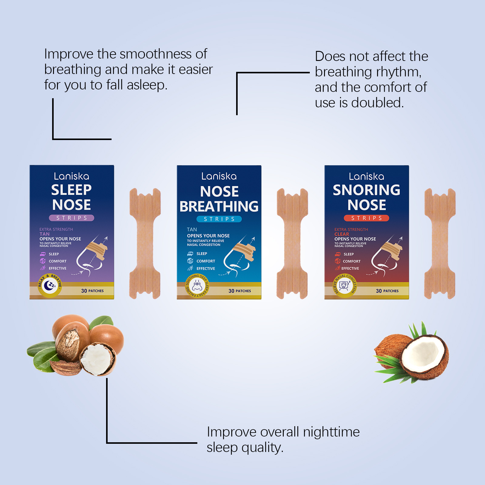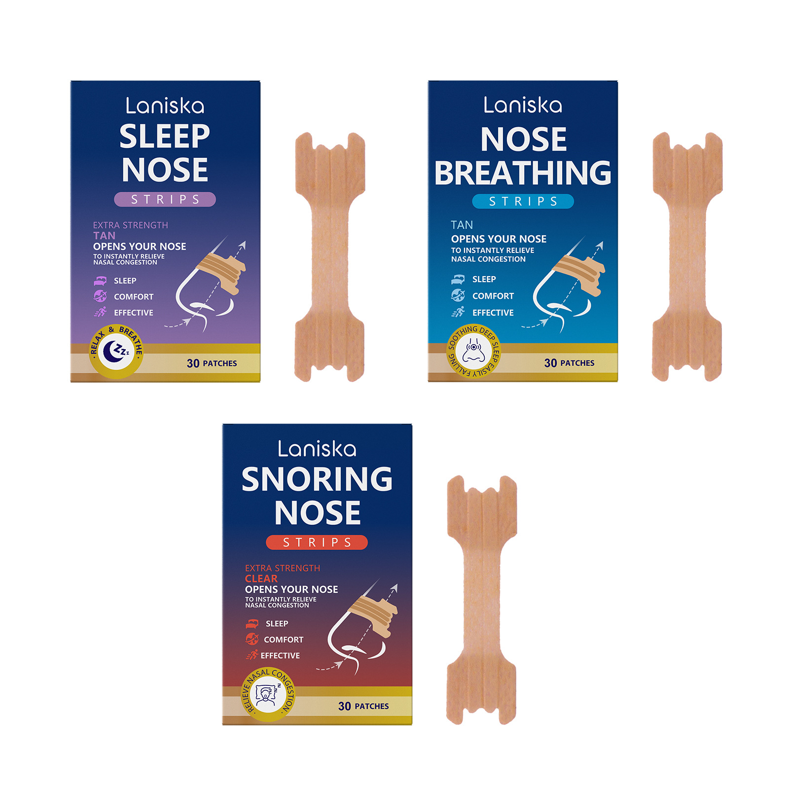 Laniska 鼻贴 夜间鼻部缓解防打鼾享受清新顺畅提升舒适睡眠鼻贴