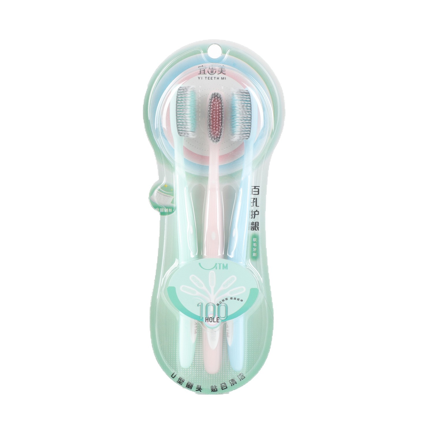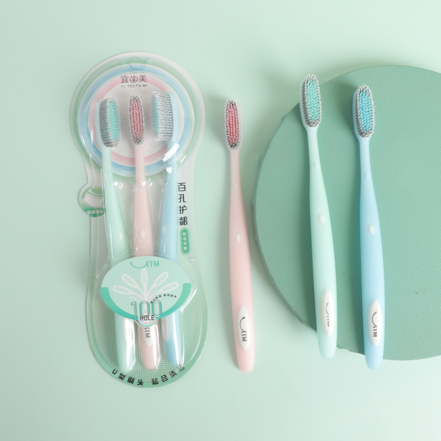 宜齿美成人牙刷软毛三支装男女家用清洁长头螺旋毛牙刷厂家批发